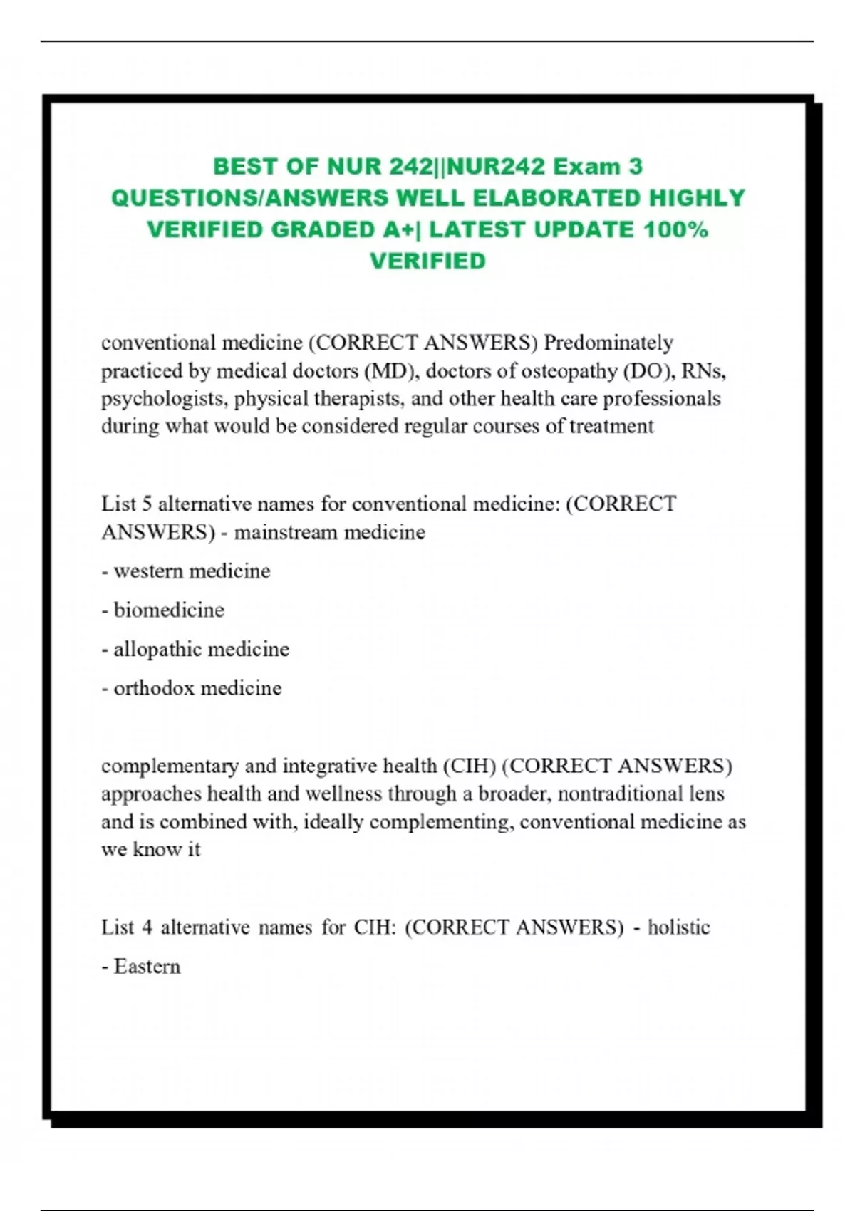 BEST OF NUR 242||NUR242 Exam 3 QUESTIONS/ANSWERS WELL ELABORATED HIGHLY VERIFIED GRADED A+| LATEST UPDATE 100% VERIFIED