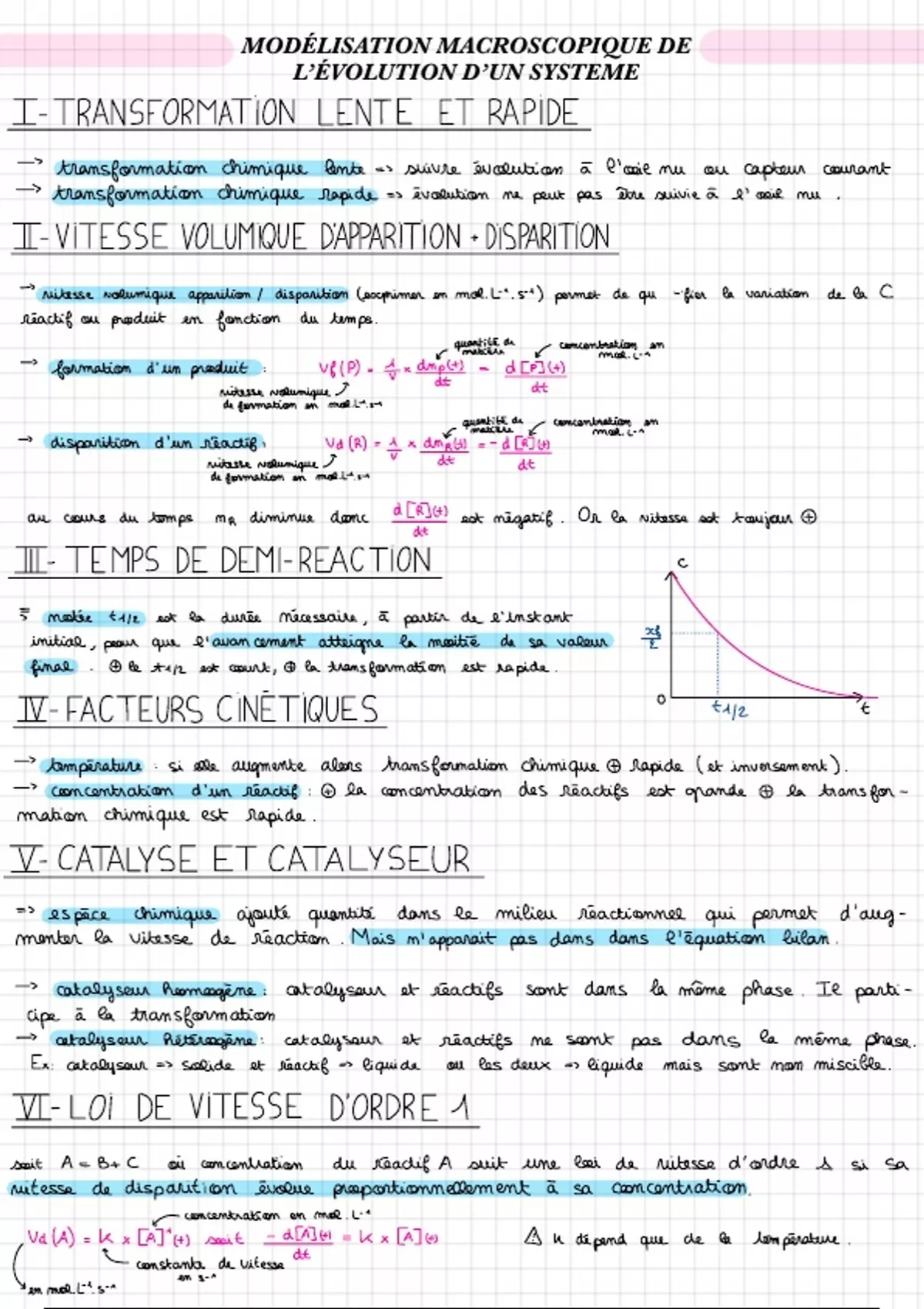 soit A = B+ C ai concentration du réactif A suit une li de Vitesse d'ordre 1 si sa
