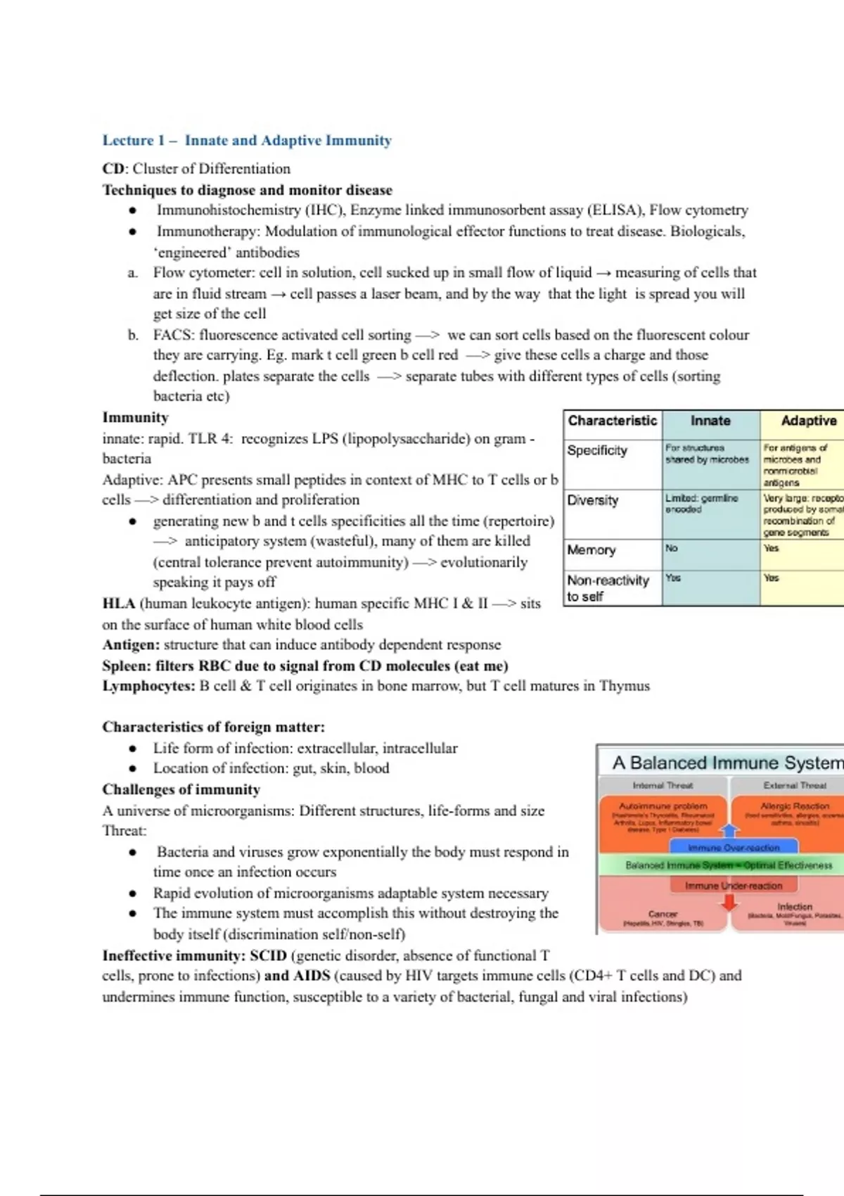 cells, prone to infections) and AIDS (caused by HIV targets immune cells (CD4+ T cells and DC) and