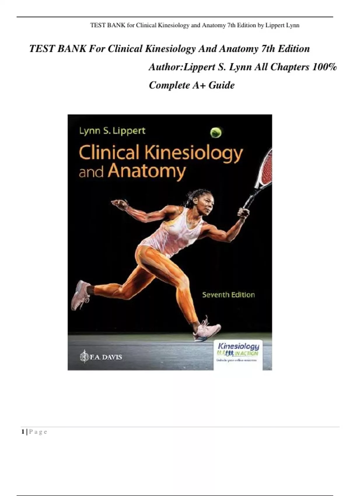 , TEST BANK for Clinical Kinesiology and Anatomy 7th Edition by Lippert Lynn