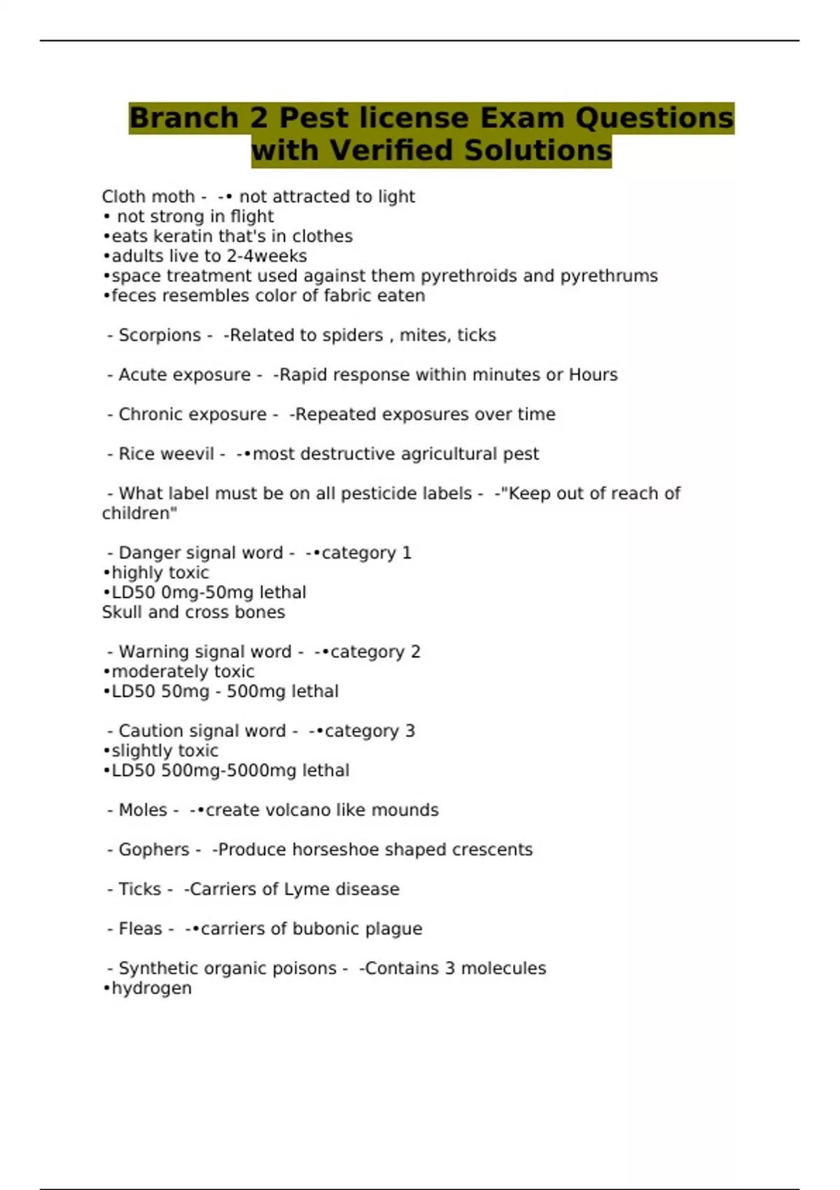 Branch 2 Pest license Exam Questions