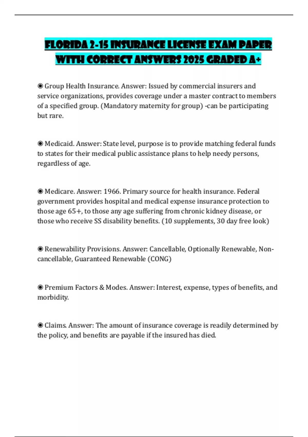 ◉ Group Health Insurance. Answer: Issued by commercial insurers and