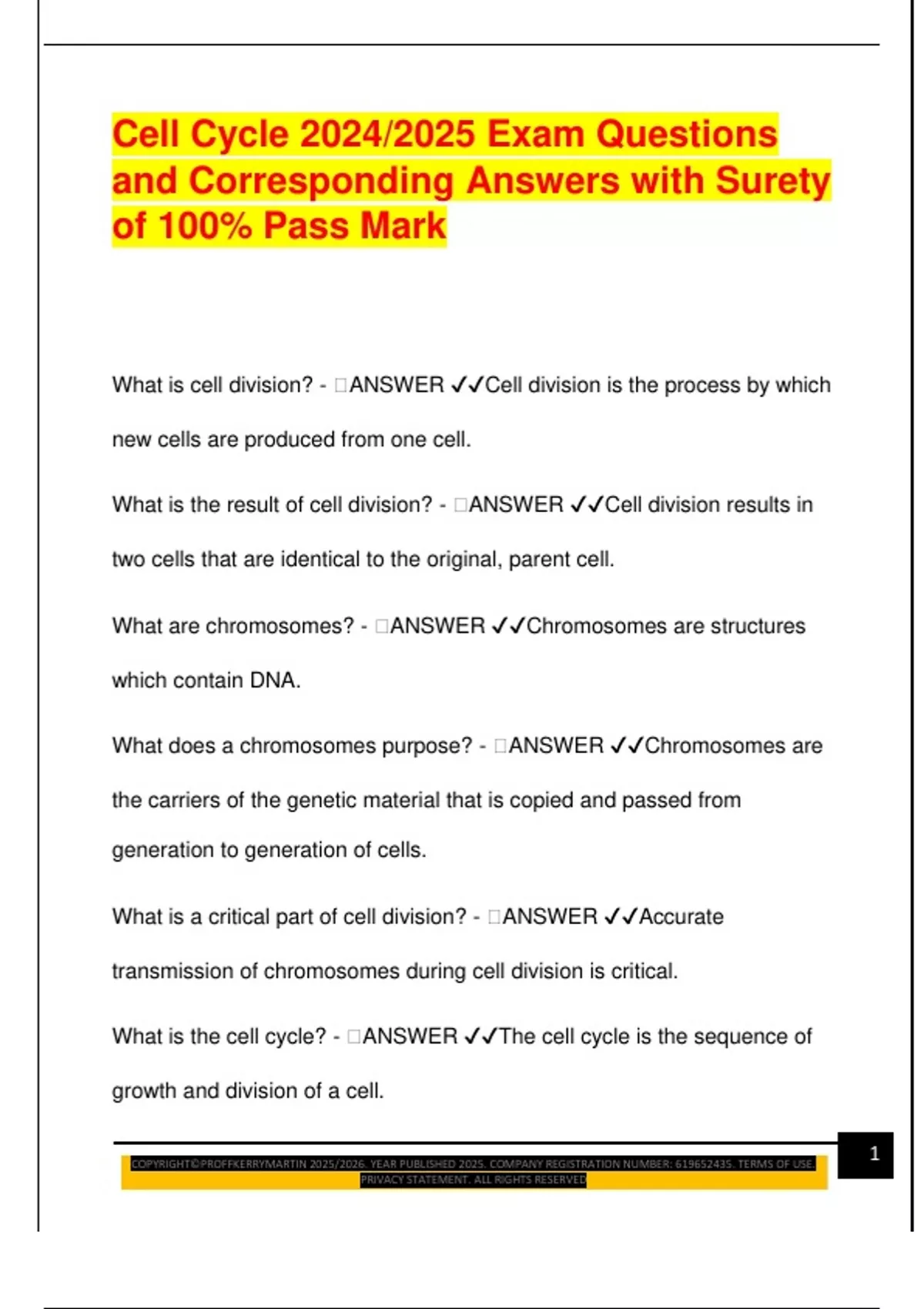 What is a critical part of cell division? - 🧠ANSWER ✔✔Accurate