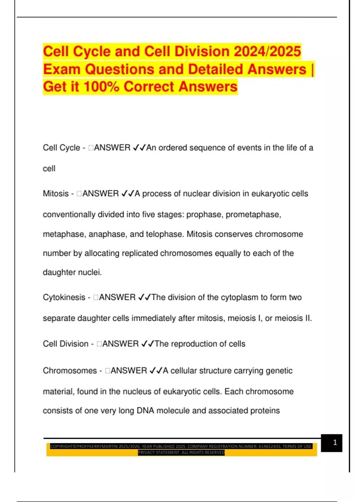 Cell Cycle - 🧠ANSWER ✔✔An ordered sequence of events in the life of a