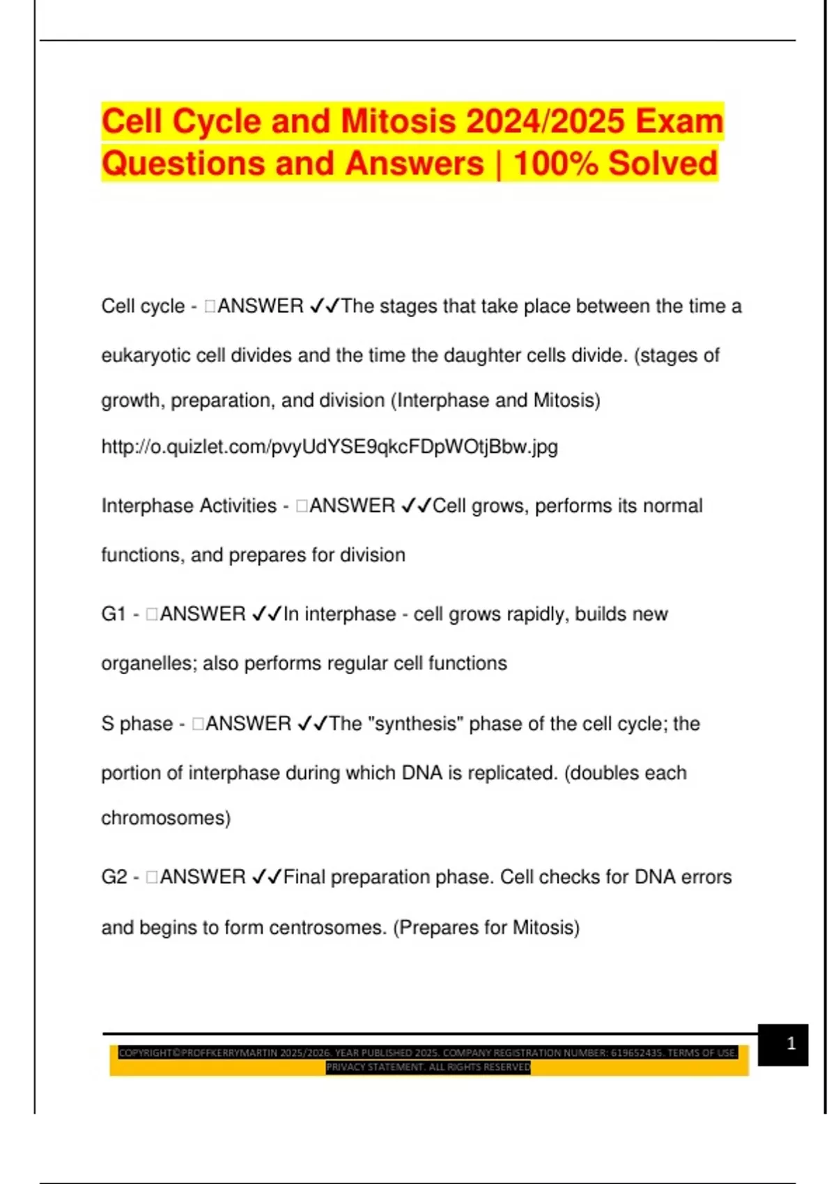 G2 - 🧠ANSWER ✔✔Final preparation phase. Cell checks for DNA errors