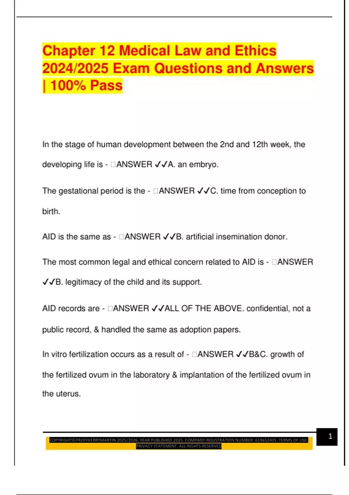 Chapter 12 Medical Law and Ethics 2024/2025 Exam Questions and Answers | 100% Pass