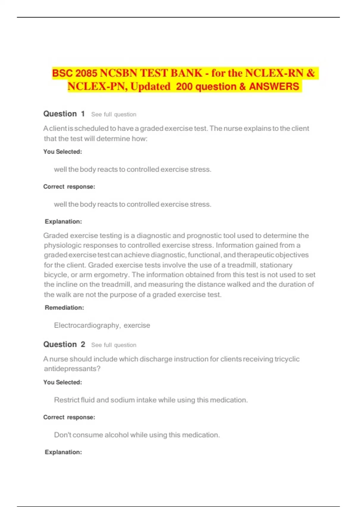 BSC 2085 NCSBN TEST BANK - for the NCLEX-RN & NCLEX-PN, Updated 200 question & ANSWERS