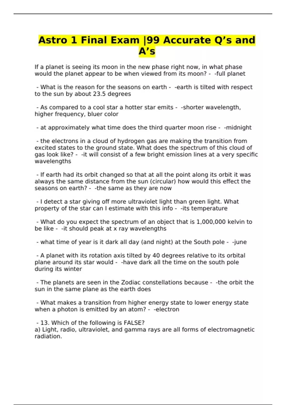 Astro 1 Final Exam |99 Accurate Q’s and A’s
