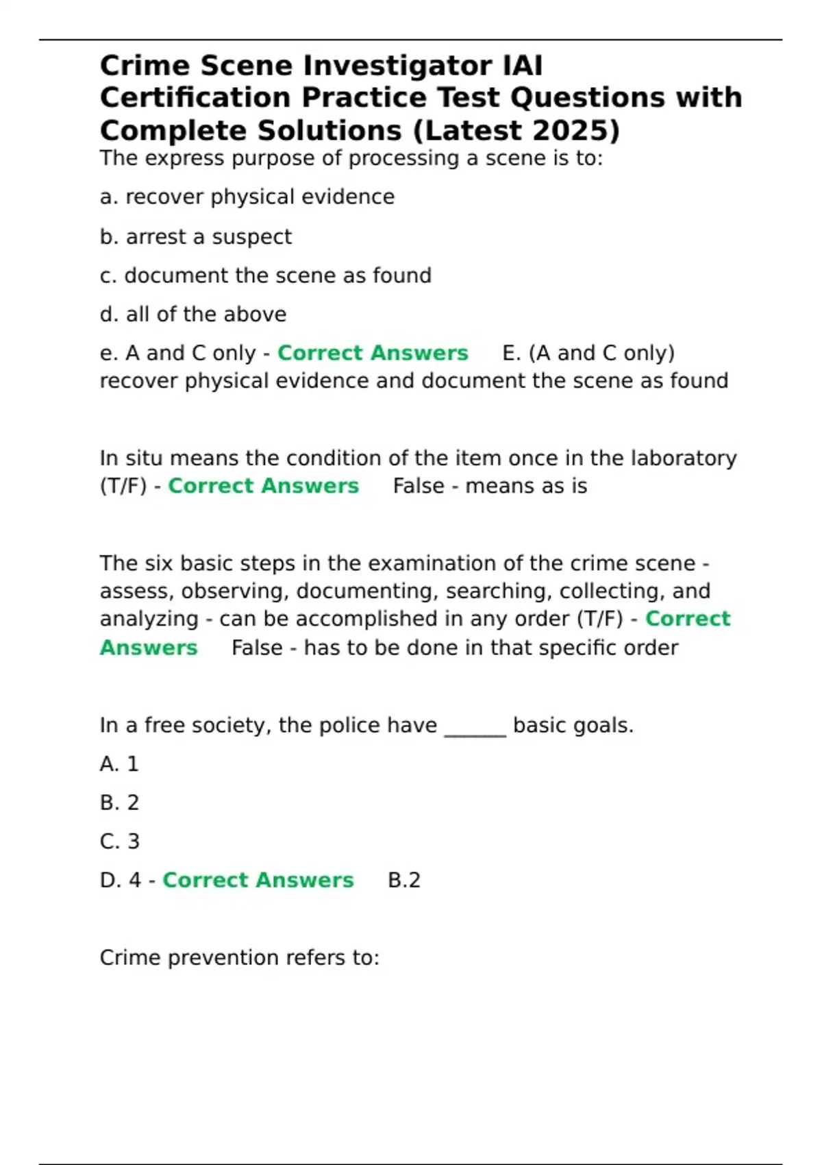 Crime Scene Investigator IAI Certification Practice Test Questions with Complete Solutions (Latest
