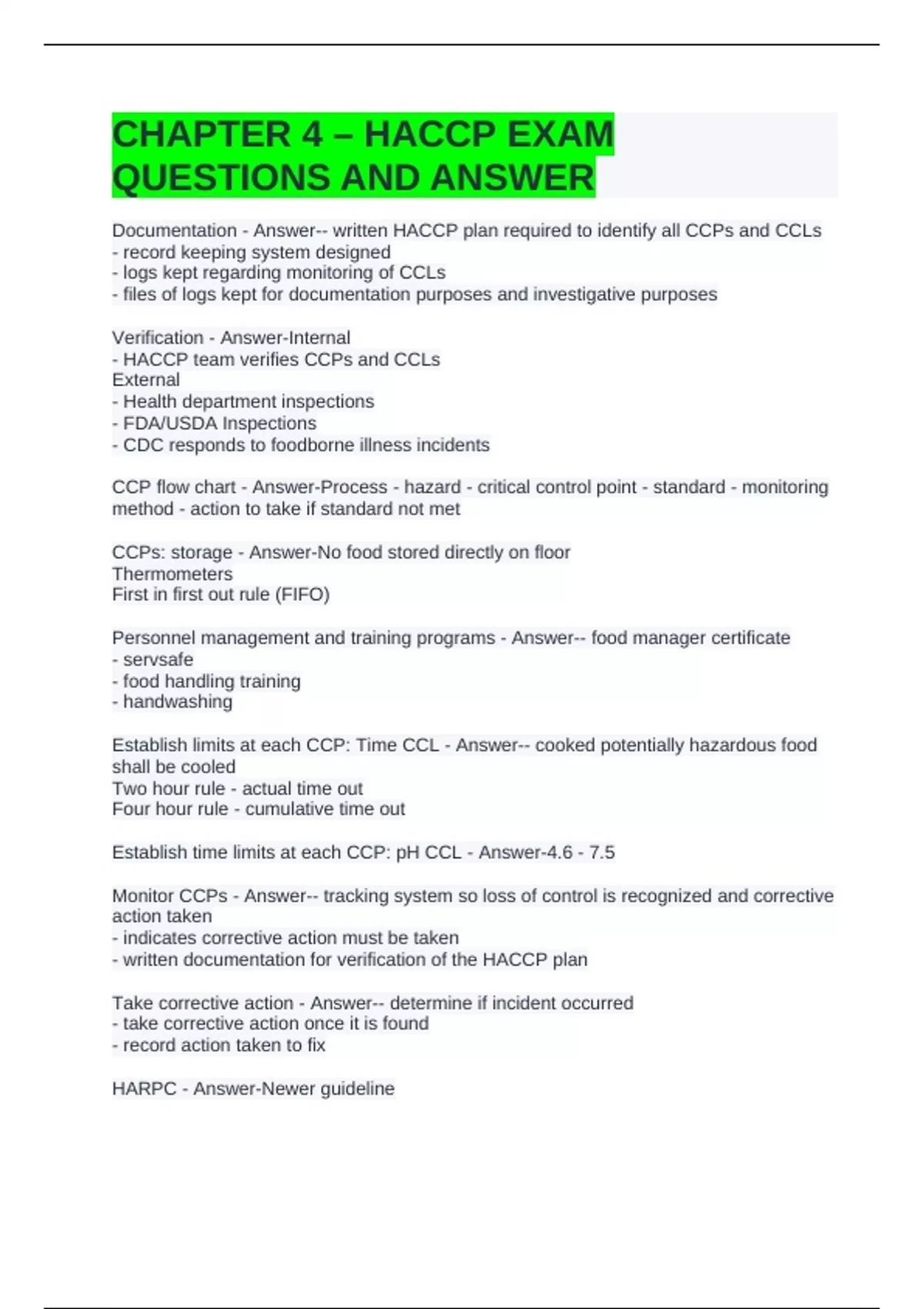 CHAPTER 4 – HACCP EXAM