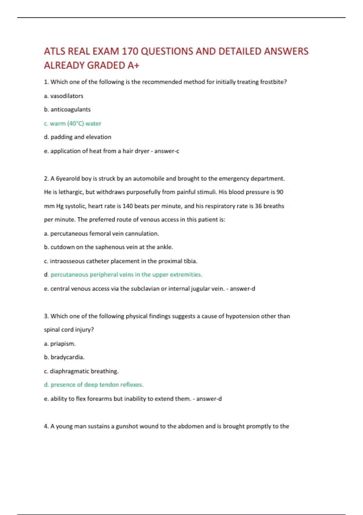 ATLS REAL EXAM 170 QUESTIONS AND DETAILED ANSWERS ALREADY GRADED A+ ATLS REAL EXAM 170 QUESTIONS AND DETAILED ANSWERS ALREADY GRADED A+ ATLS REAL EXAM 170 QUESTIONS AND DETAILED ANSWERS ALREADY GRADED A+