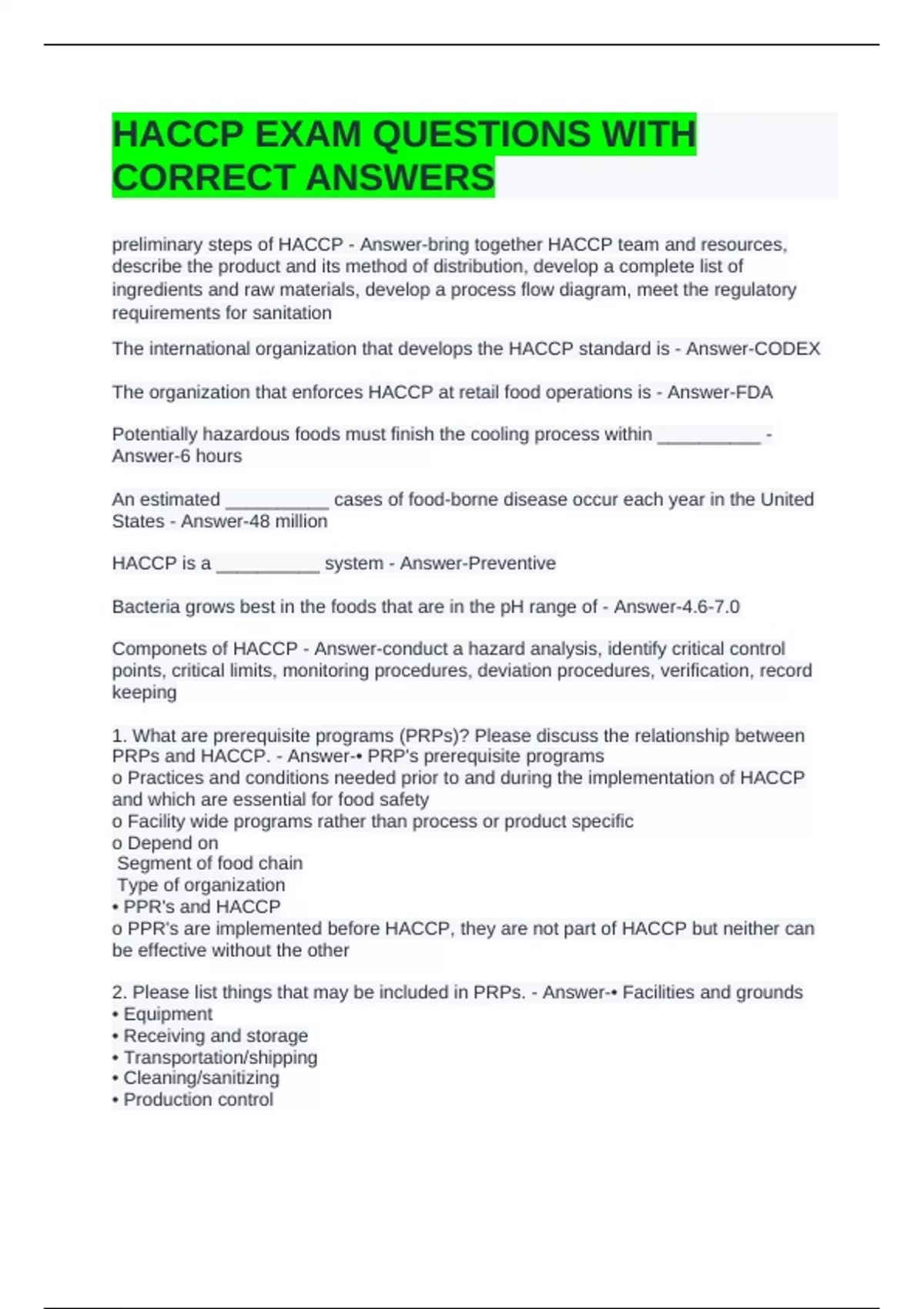PRPs and HACCP. - Answer-• PRP's prerequisite programs