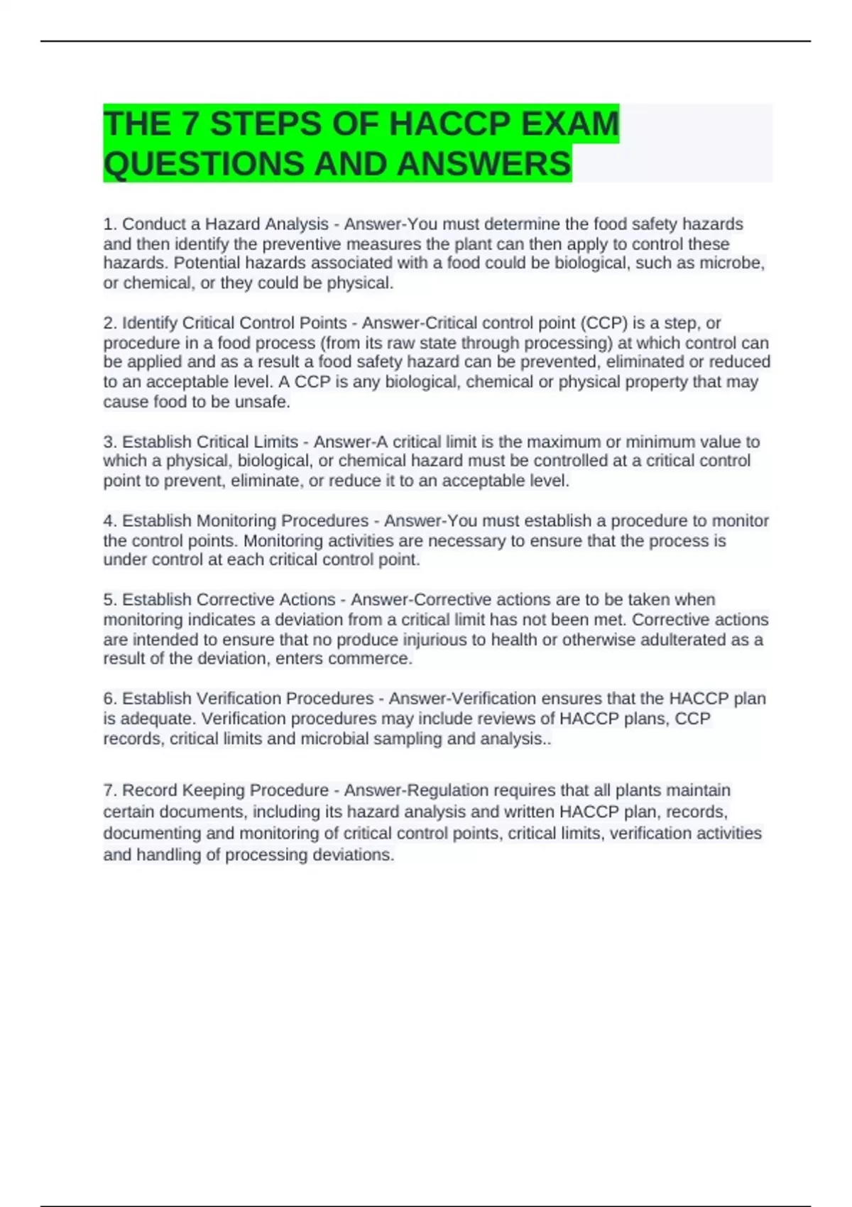 THE 7 STEPS OF HACCP EXAM