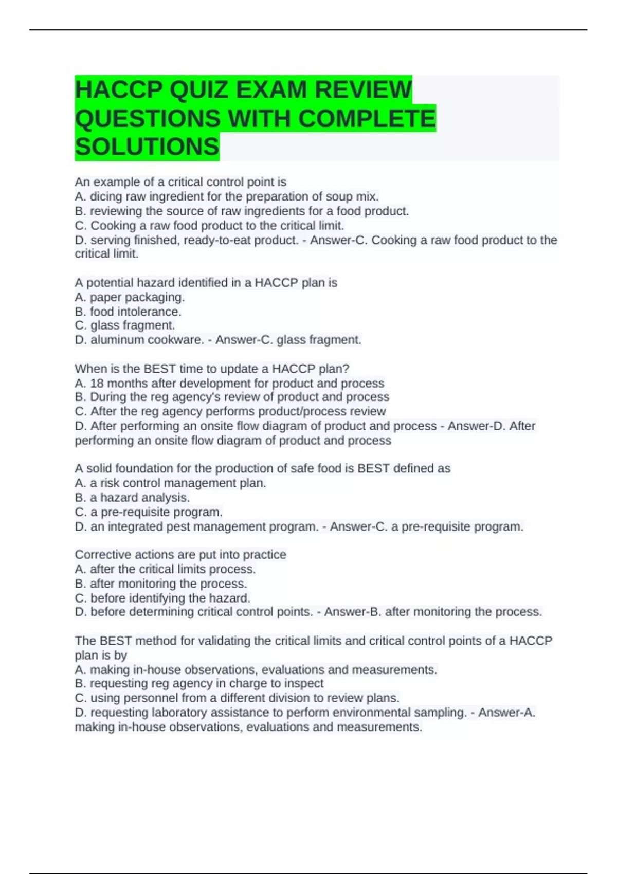 D. before determining critical control points. - Answer-B. after monitoring the process.