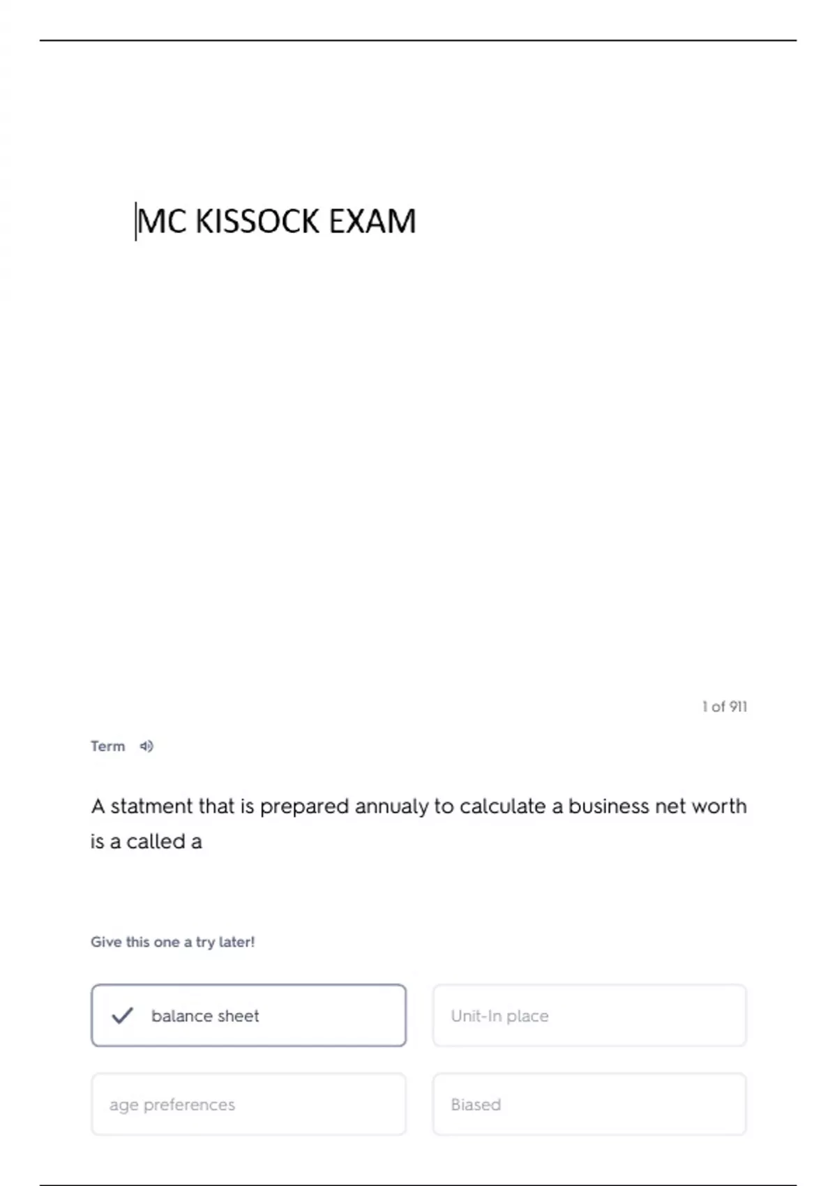 A statment that is prepared annualy to calculate a business net worth