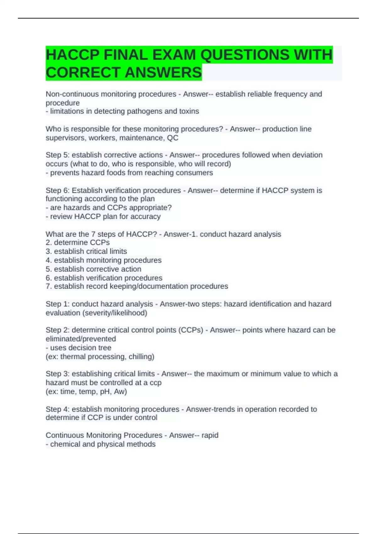 What are the 7 steps of HACCP? - Answer-1. conduct hazard analysis