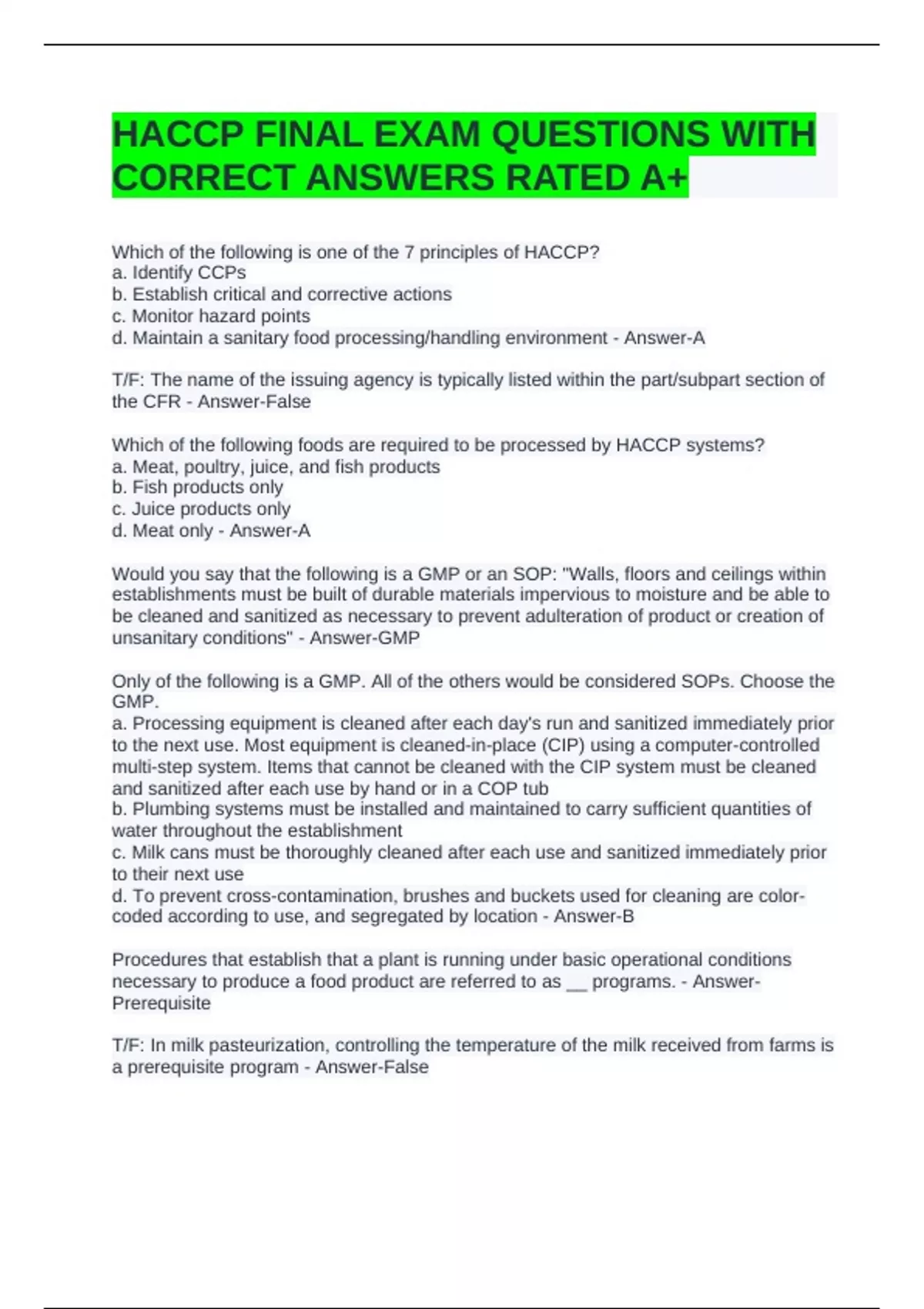 necessary to produce a food product are referred to as __ programs. - Answer-