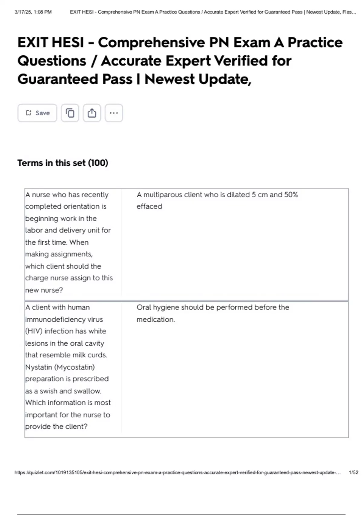 , 3/17/25, 1:08 PM EXIT HESI - Comprehensive PN Exam A Practice Questions / Accurate Expert Verified for Guaranteed Pass | Newest Update, Flas…