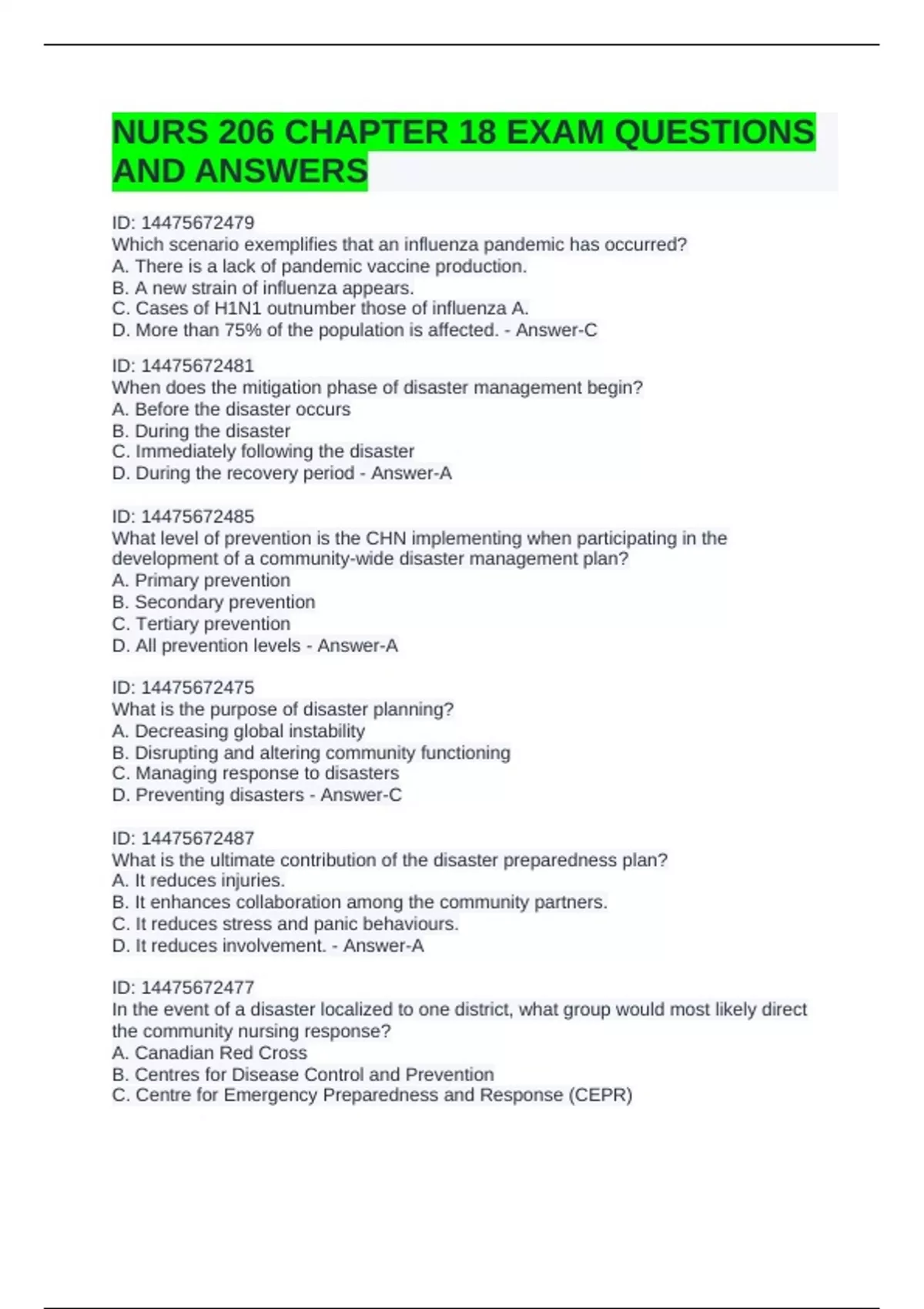 D. Preventing disasters - Answer-C