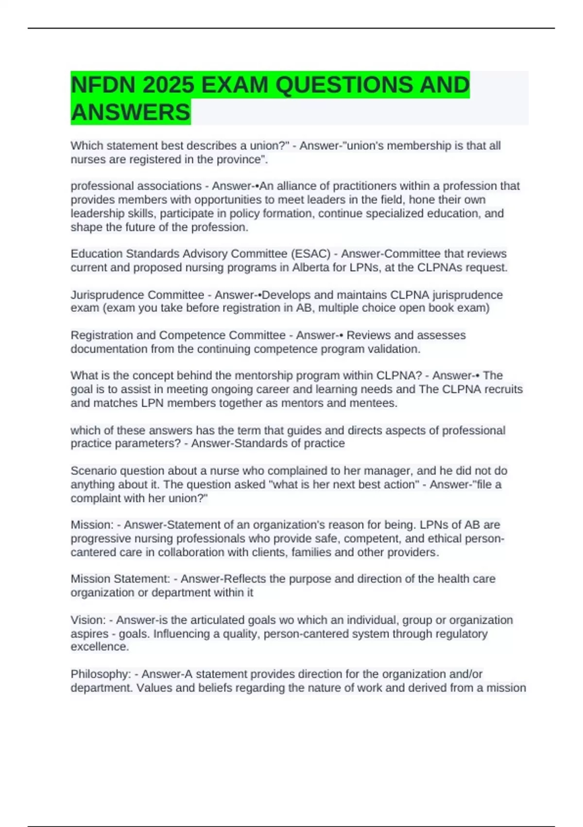 NFDN 2025 EXAM QUESTIONS AND