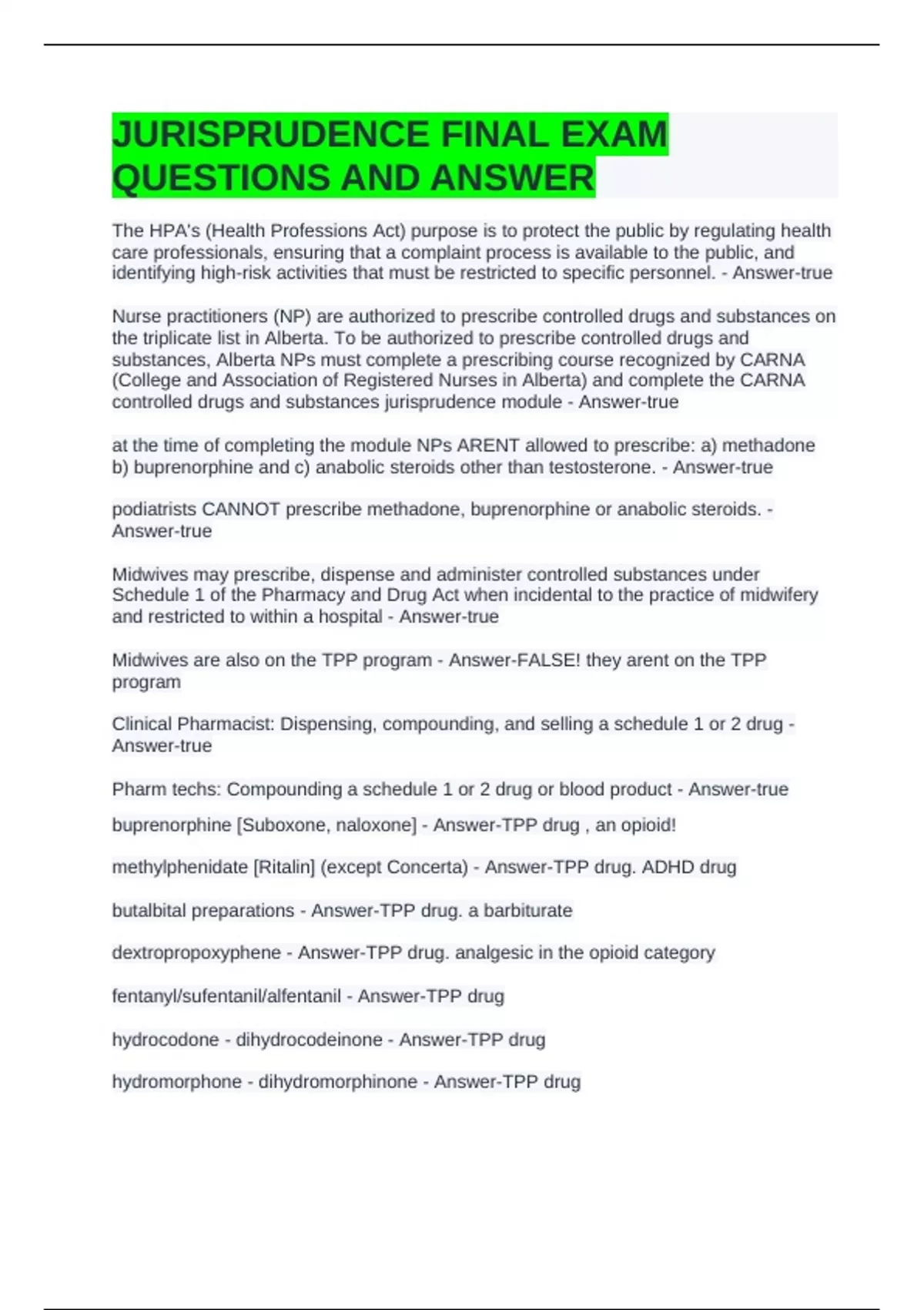controlled drugs and substances jurisprudence module - Answer-true