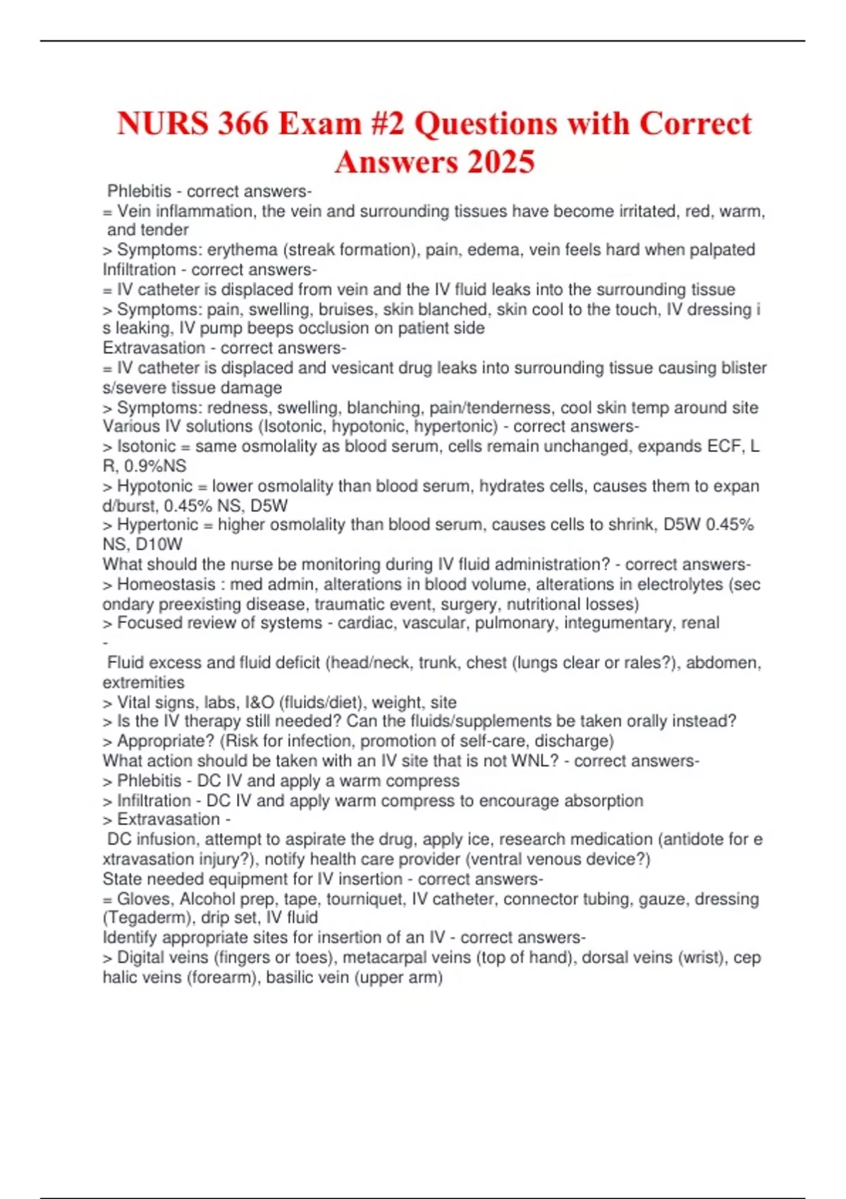 NURS 366 Exam -2 Questions with Correct Answers 2025