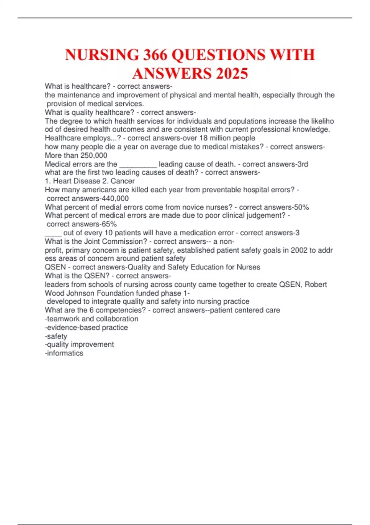 NURSING 366 QUESTIONS WITH ANSWERS 2025
