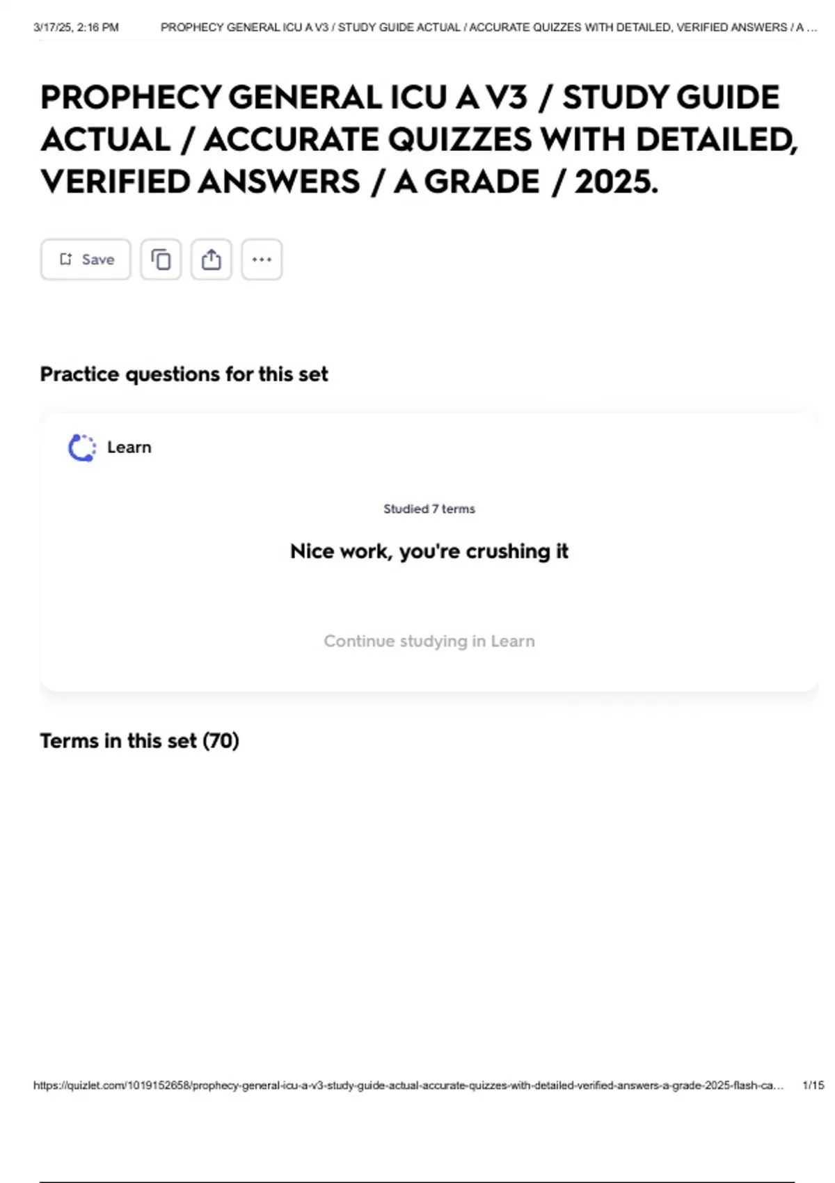 , 3/17/25, 2:16 PM PROPHECY GENERAL ICU A V3 / STUDY GUIDE ACTUAL / ACCURATE QUIZZES WITH DETAILED, VERIFIED ANSWERS / A …