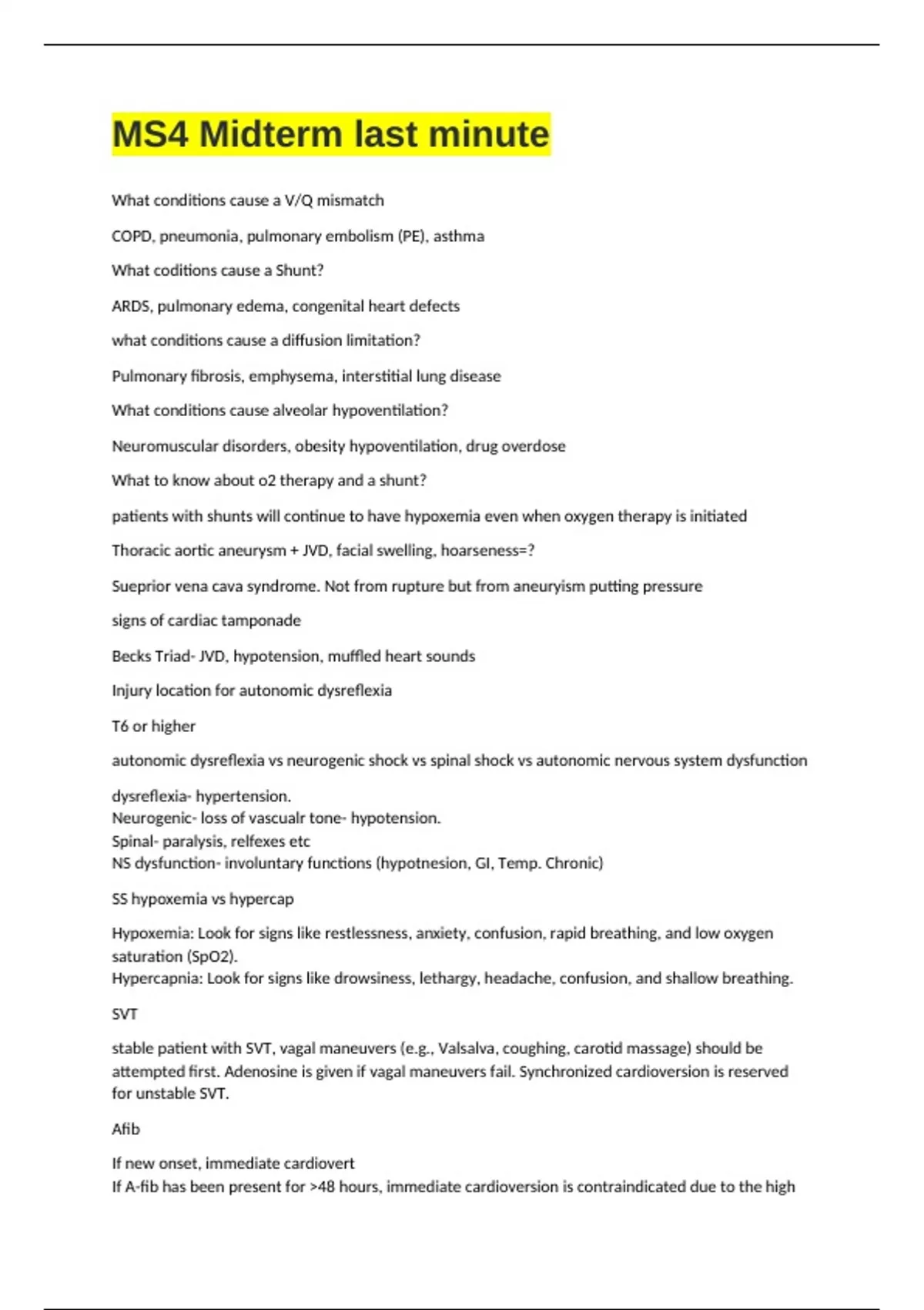 patients with shunts will continue to have hypoxemia even when oxygen therapy is initiated