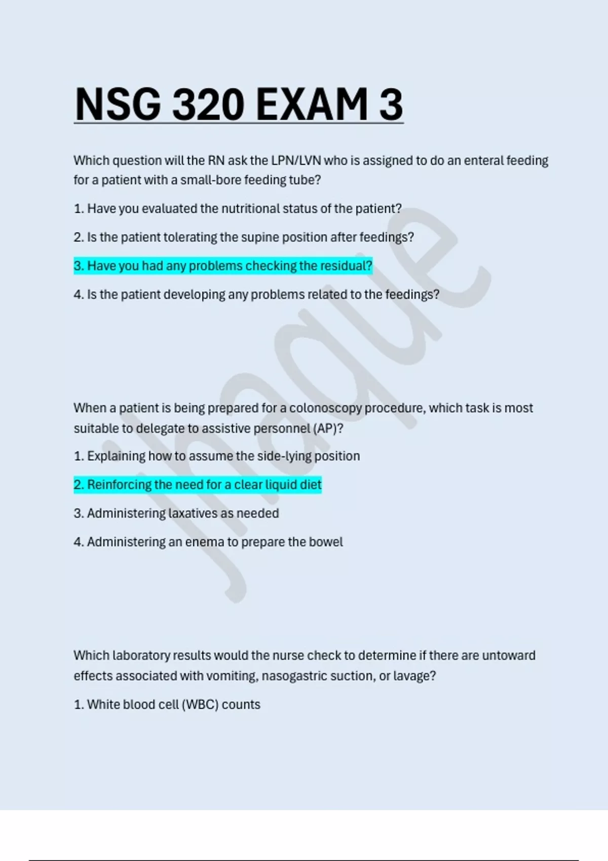 2. Reinforcing the need for a clear liquid diet