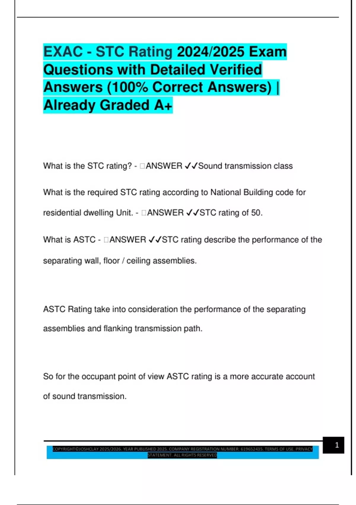 What is ASTC - 🧠ANSWER ✔✔STC rating describe the performance of the