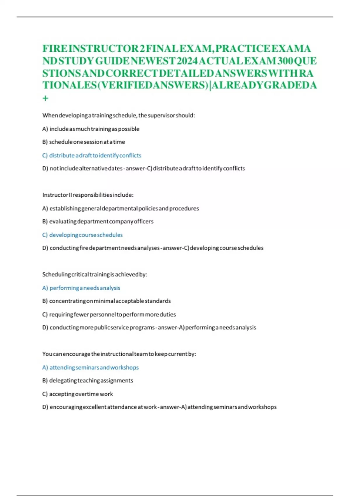 FIRE INSTRUCTOR 2 FINAL EXAM, PRACTICE EXAMA
