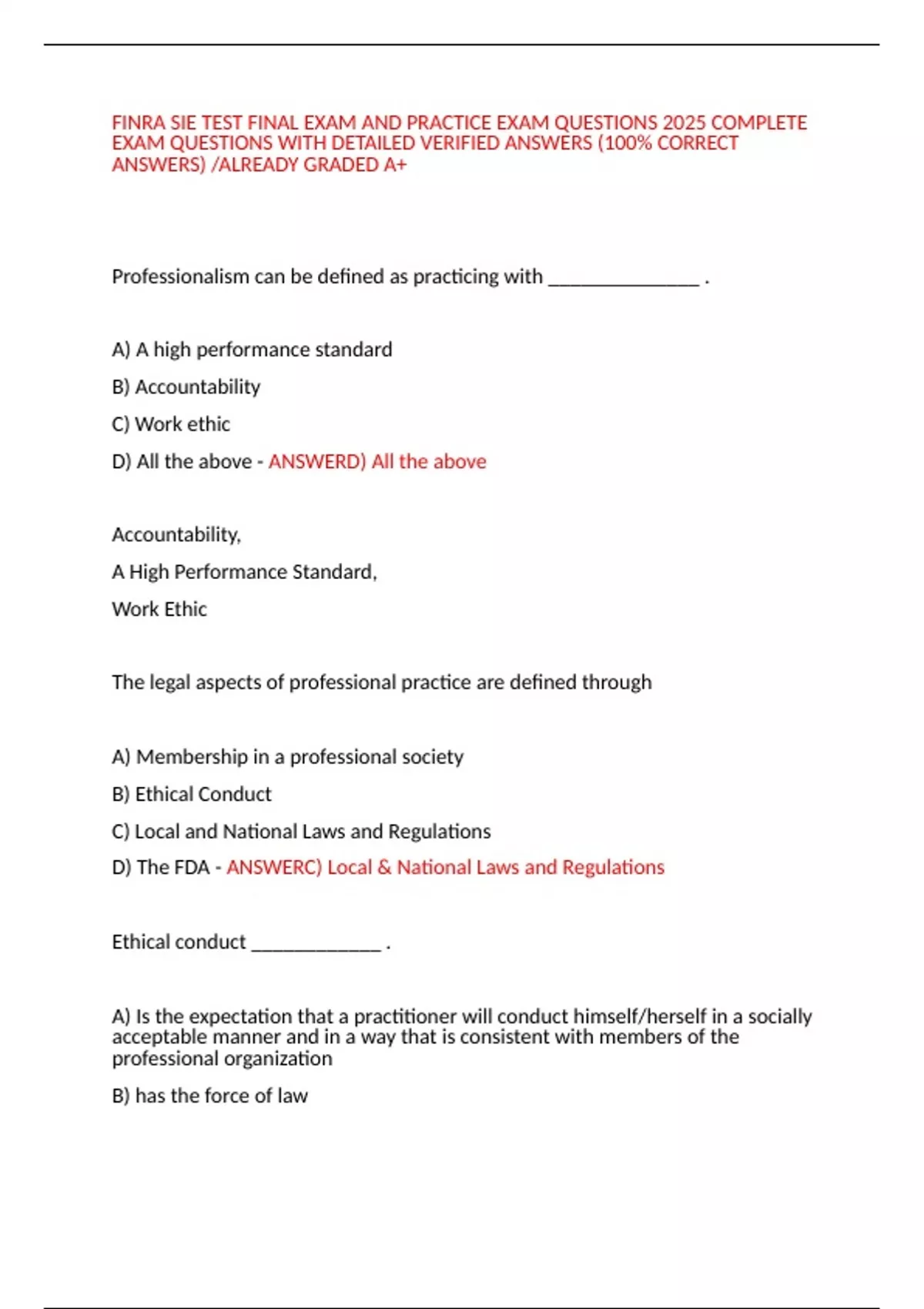 D) Required by law - ANSWERB) A pursuit of true professionals
