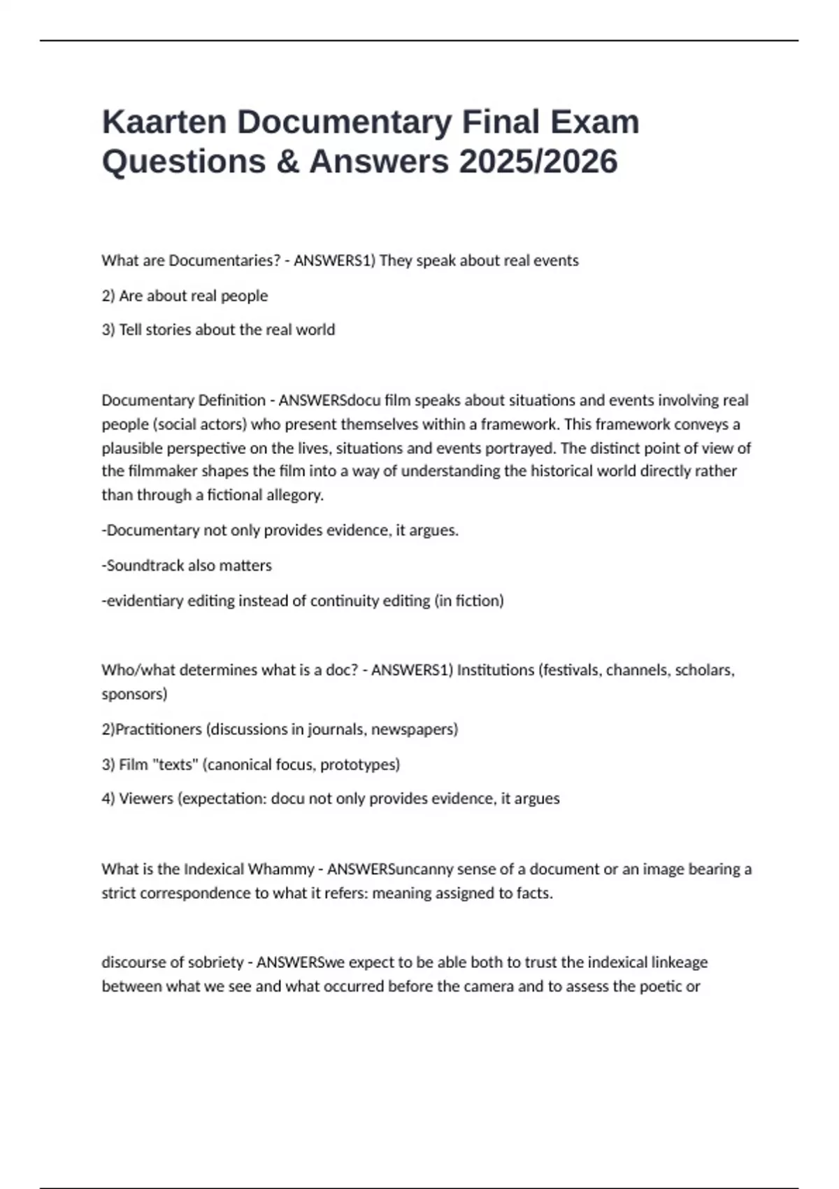 What are Documentaries? - ANSWERS1) They speak about real events