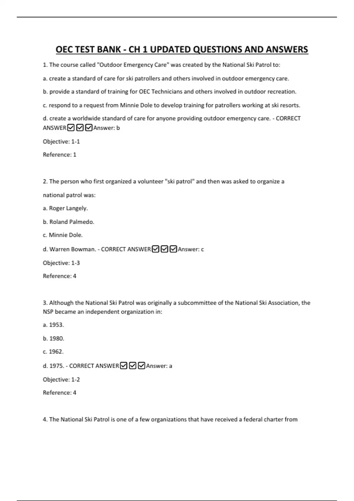 1. The course called "Outdoor Emergency Care" was created by the National Ski Patrol to: