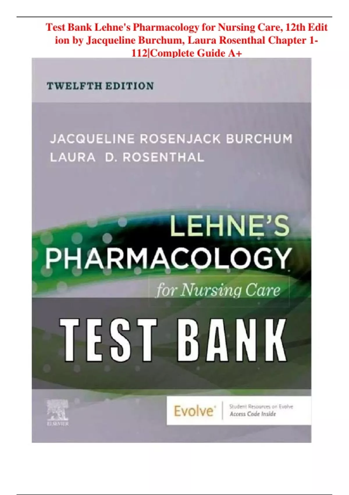 , Test Bank Lehne's Pharmacology for Nursing Care, 12th Edit