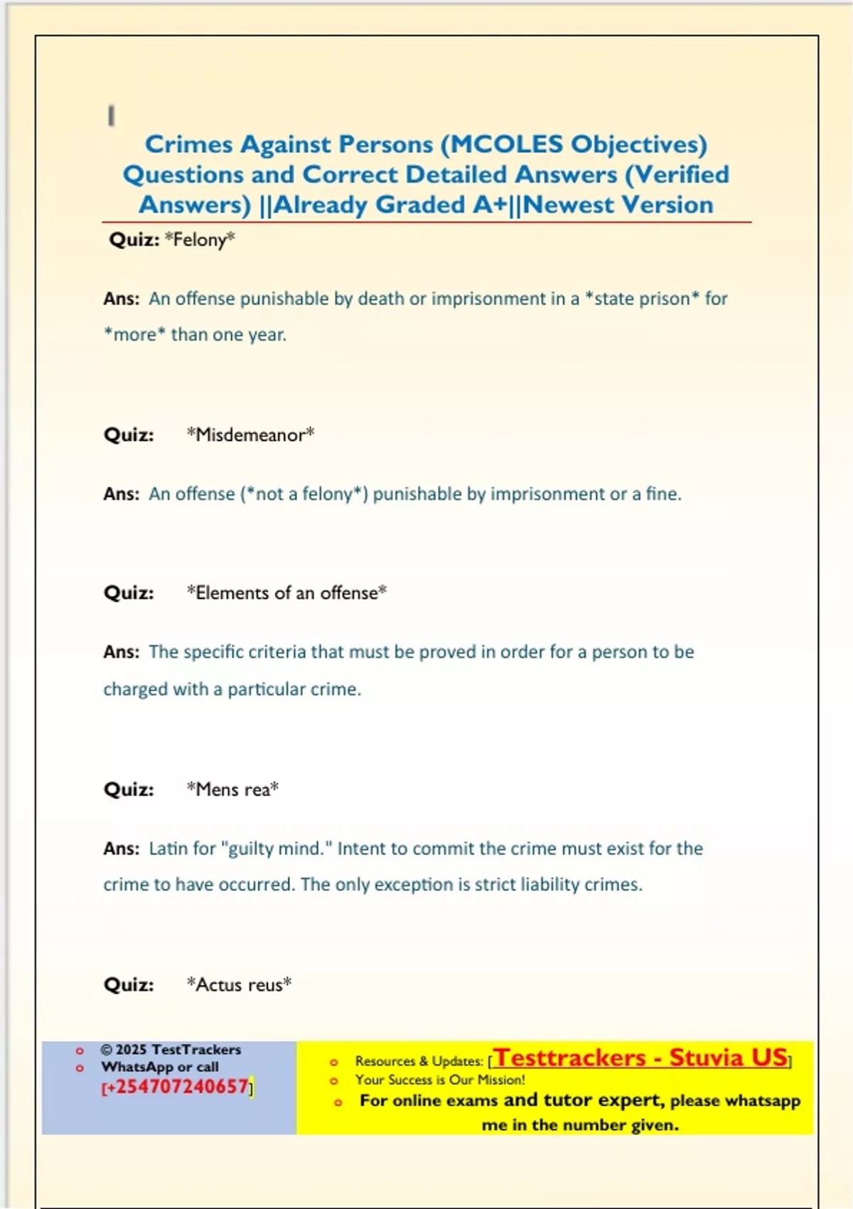 WhatsApp or call o Resources & Updates: [Testtrackers - Stuvia US]