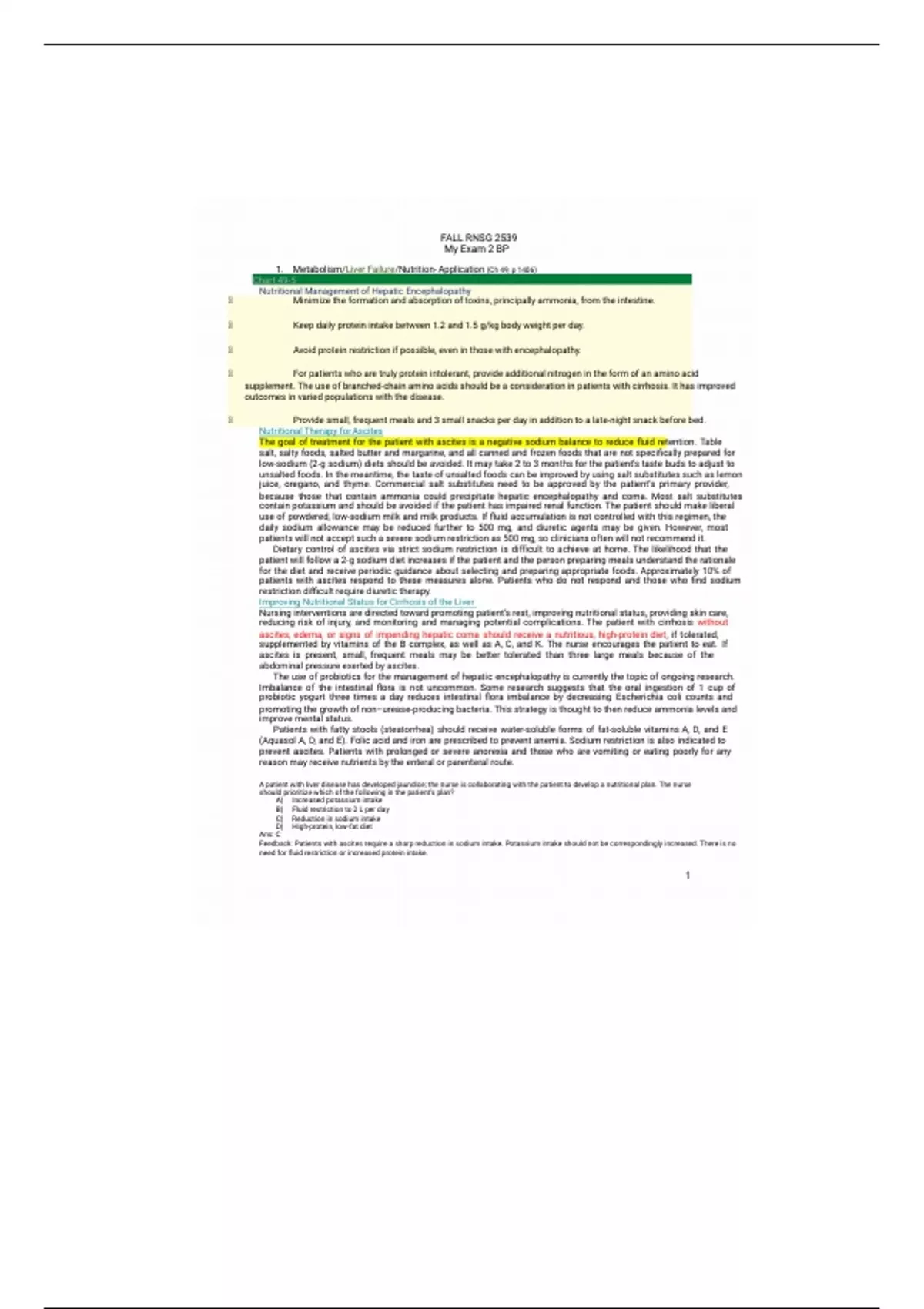 1. Metabolism/Liver Failure/Nutrition- Application (Ch 49, p 1406)
