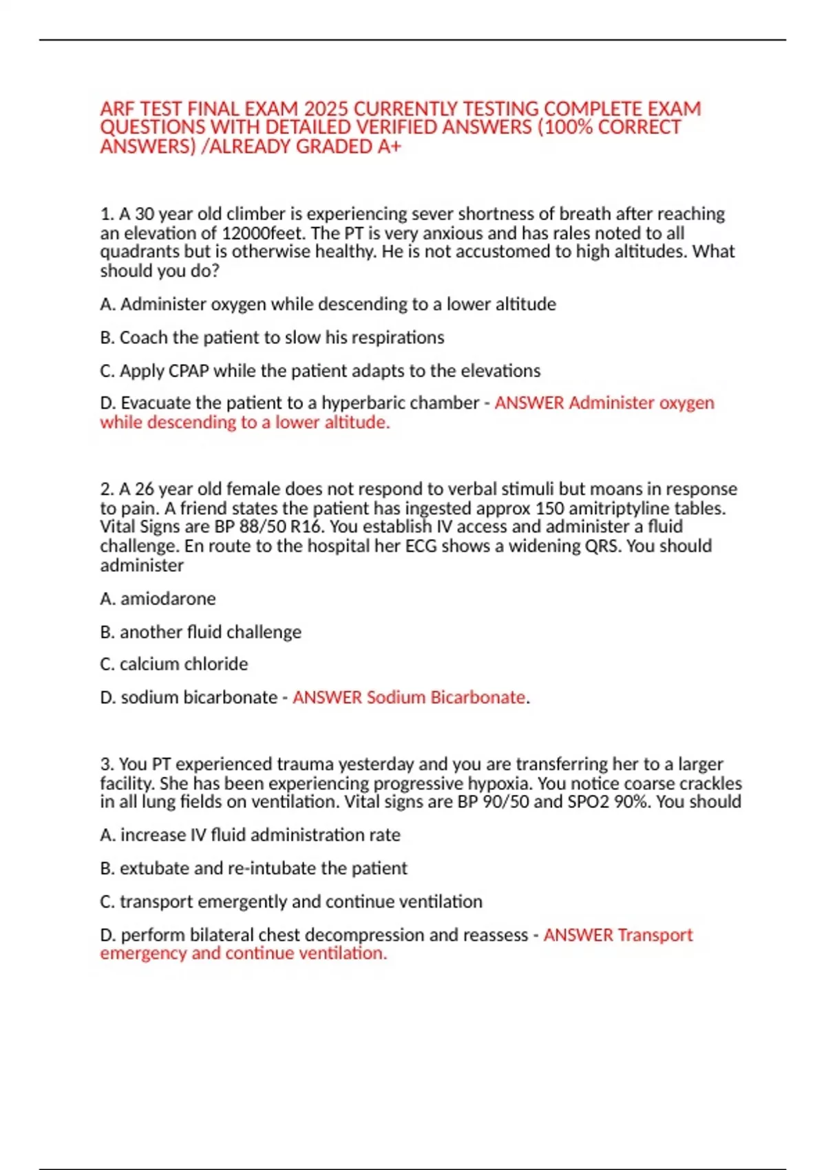 ARF TEST FINAL EXAM 2025 CURRENTLY TESTING COMPLETE EXAM QUESTIONS WITH DETAILED VERIFIED ANSWERS (100% CORRECT ANSWERS) /ALREADY GRADED A+