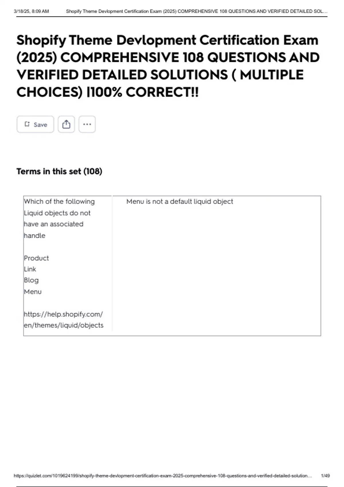 3/18/25, 8:09 AM Shopify Theme Devlopment Certification Exam (2025) COMPREHENSIVE 108 QUESTIONS AND VERIFIED DETAILED SOL…