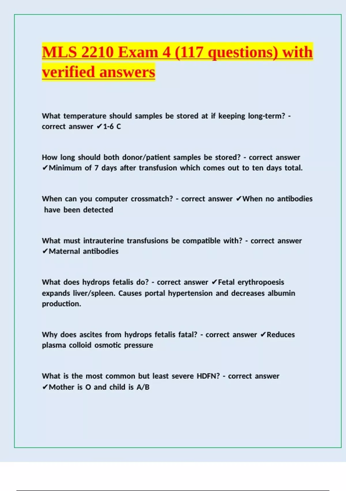 MLS 2210 Exam 4 (117 questions) with verified answers