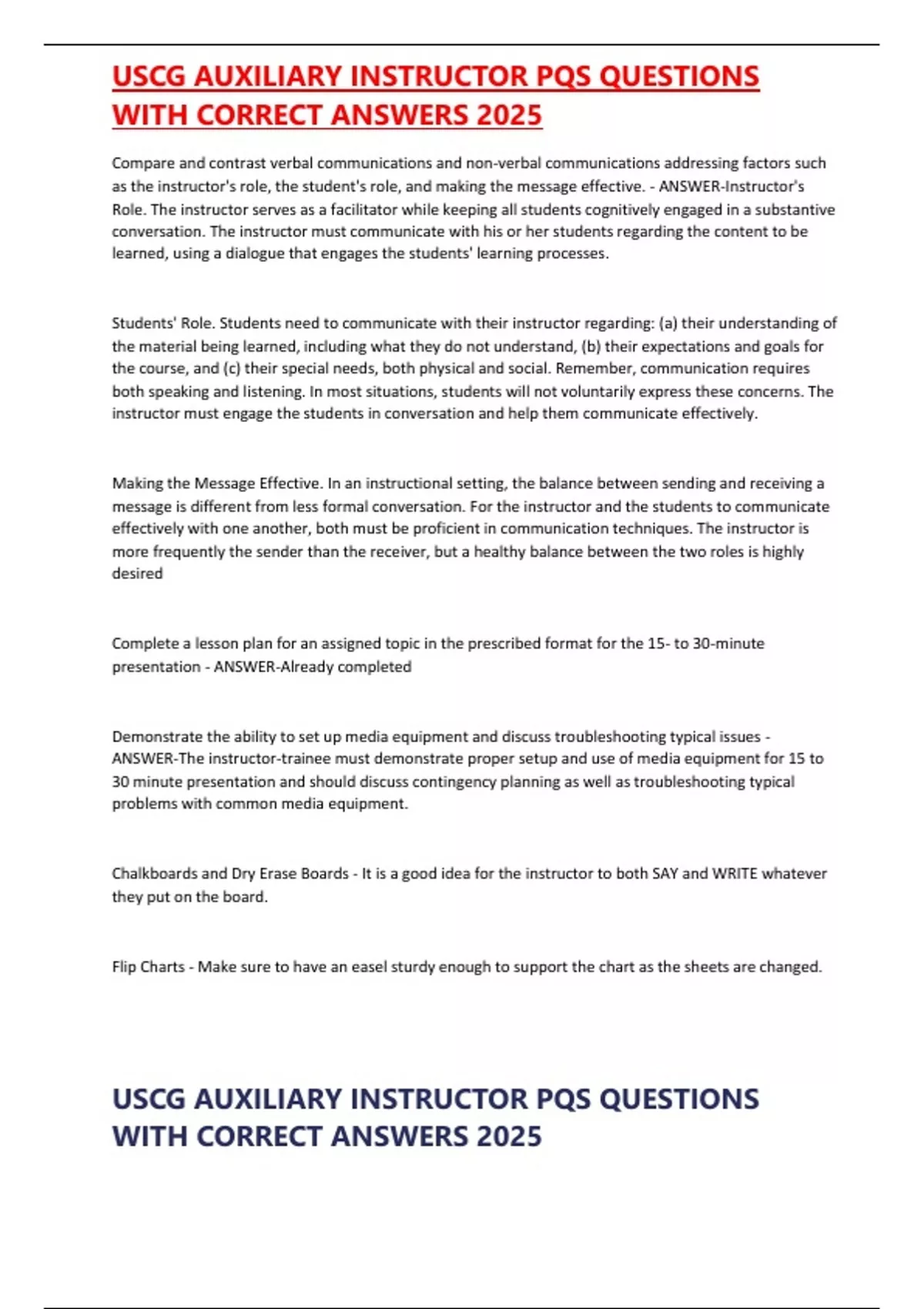, USCG AUXILIARY INSTRUCTOR PQS QUESTIONS