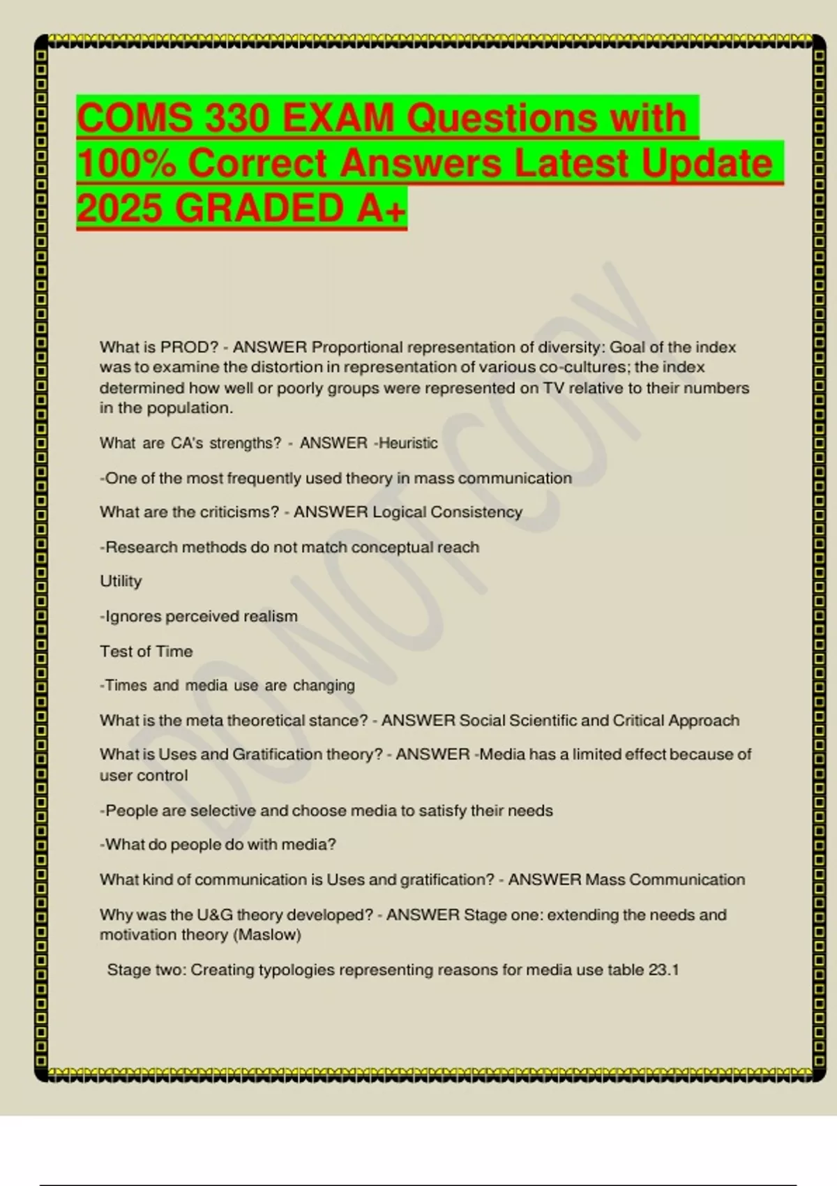 COMS 330 EXAM Questions with