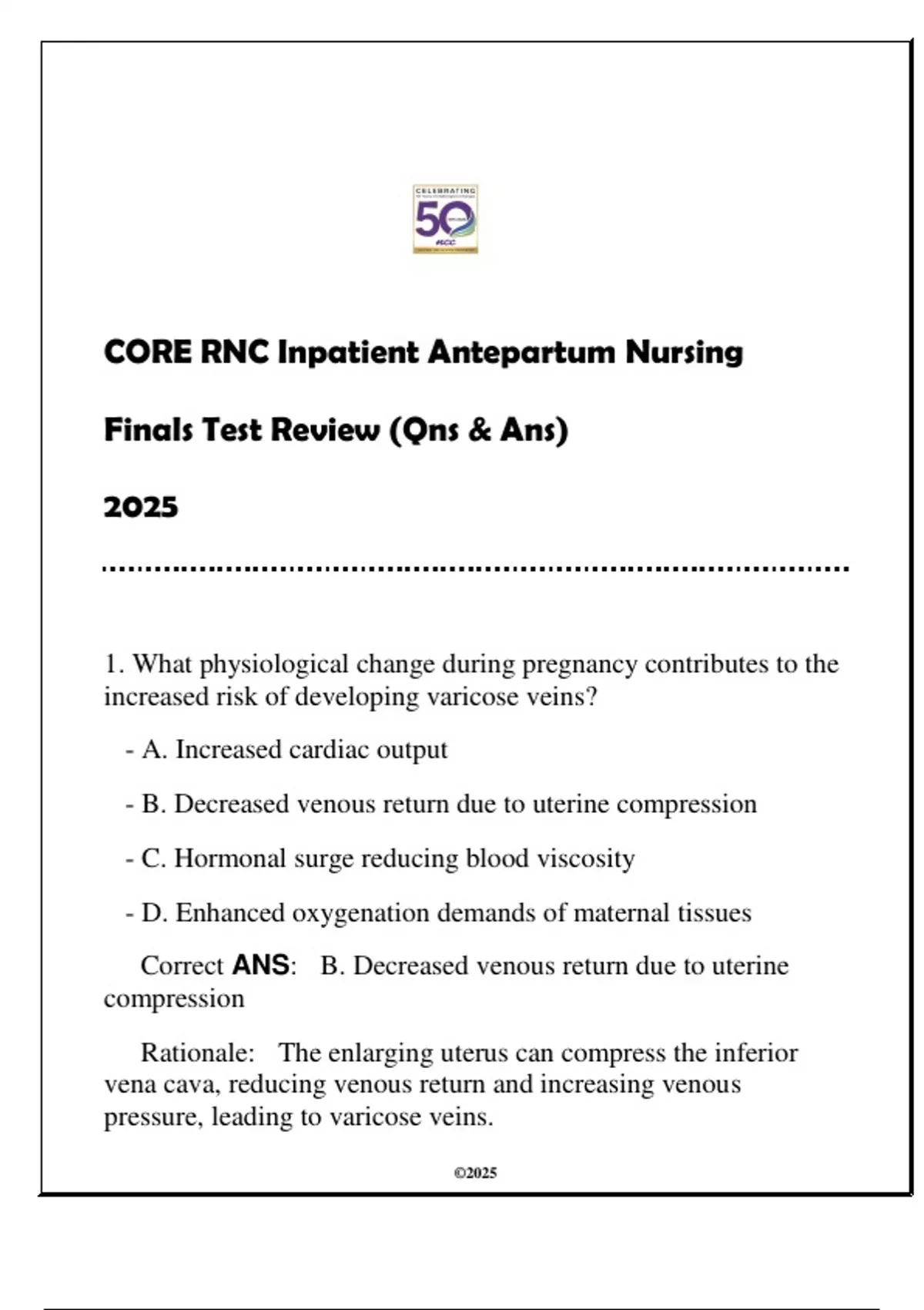 NCC CORE RNC (Inpatient Antepartum Nursing) Finals Test Review 2025 (With Solutions