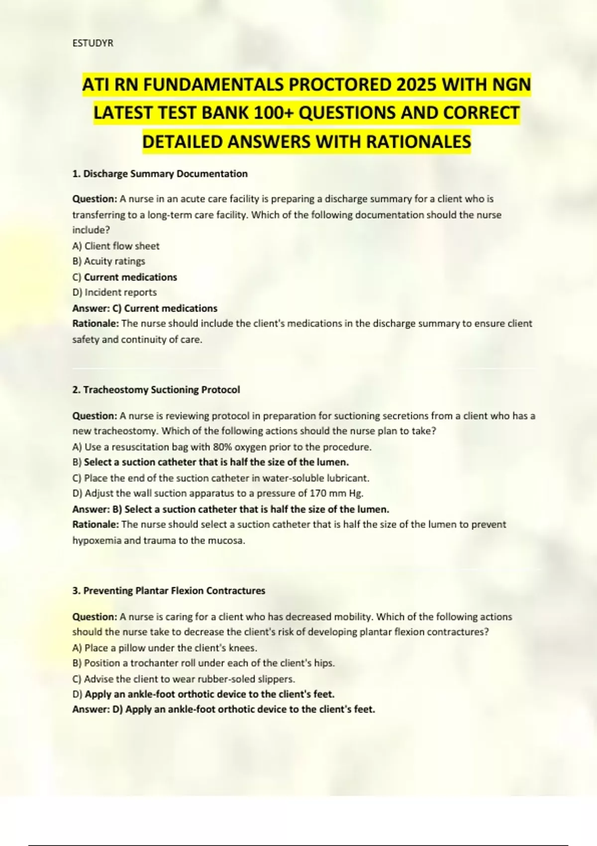 ATI RN FUNDAMENTALS PROCTORED 2025 WITH NGN