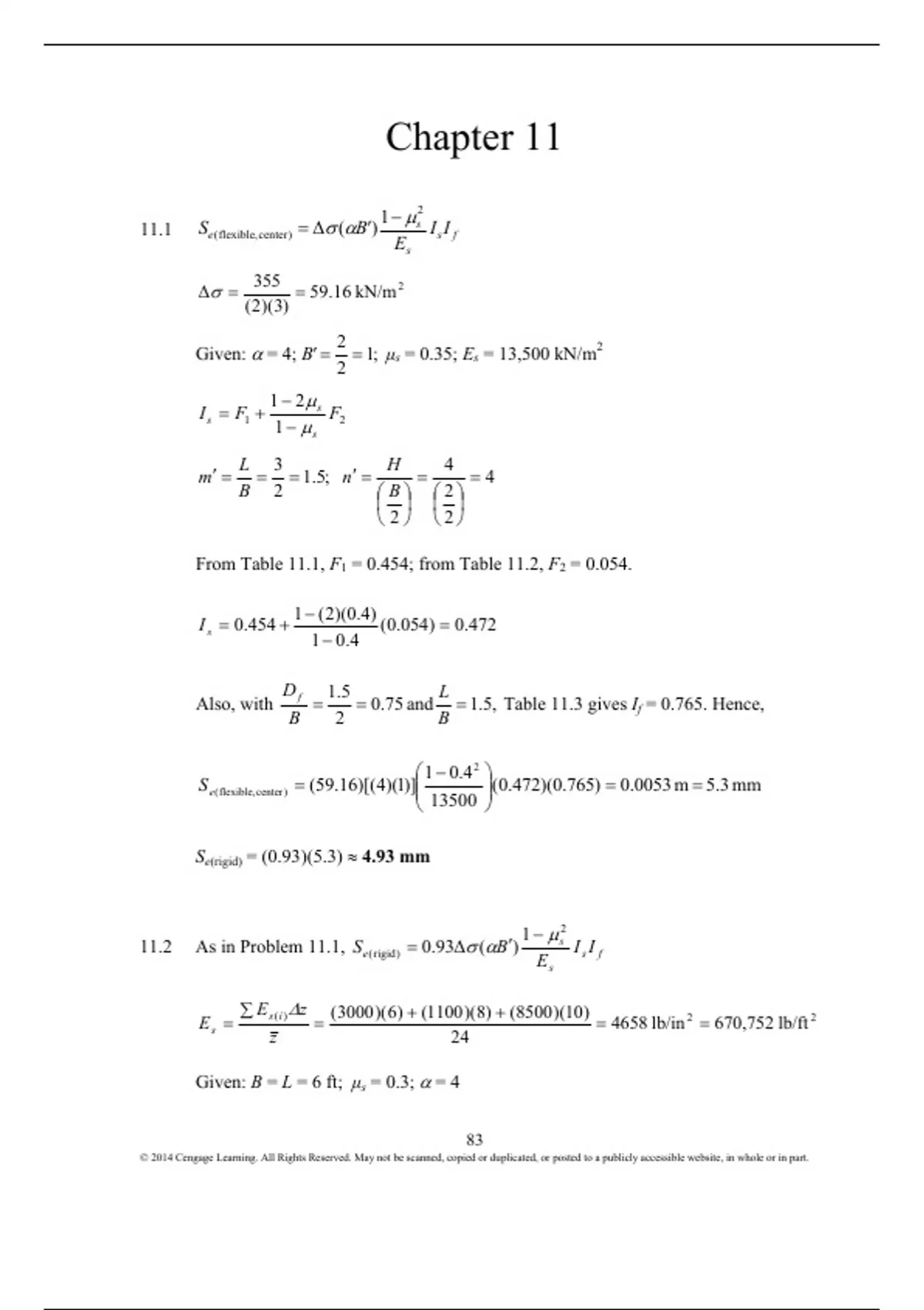11.2 As in Problem 11.1, S e ( rigid ) = 0.93Δσ (αB ′) IsI f