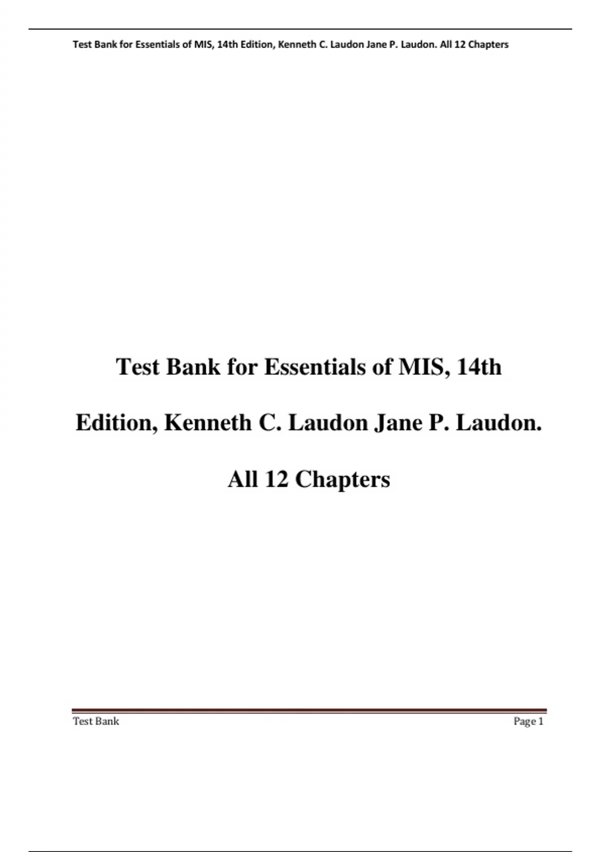 , Test Bank for Essentials of MIS, 14th Edition, Kenneth C. Laudon Jane P. Laudon. All 12 Chapters