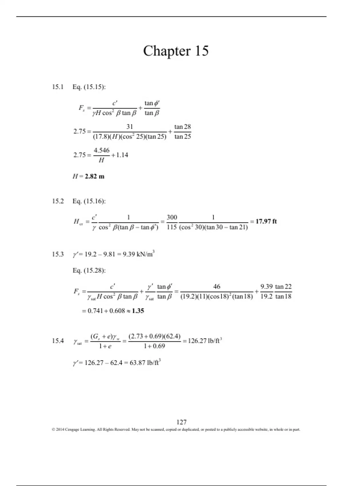 15.3 γ′ = 19.2 – 9.81 = 9.39 kN/m3