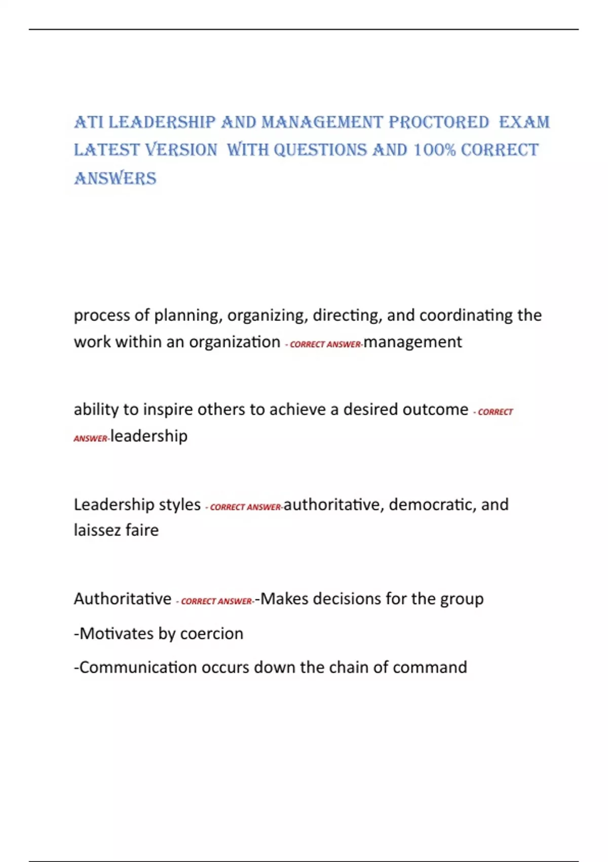 ATI LEADERSHIP AND MANAGEMENT PROCTORED EXAM