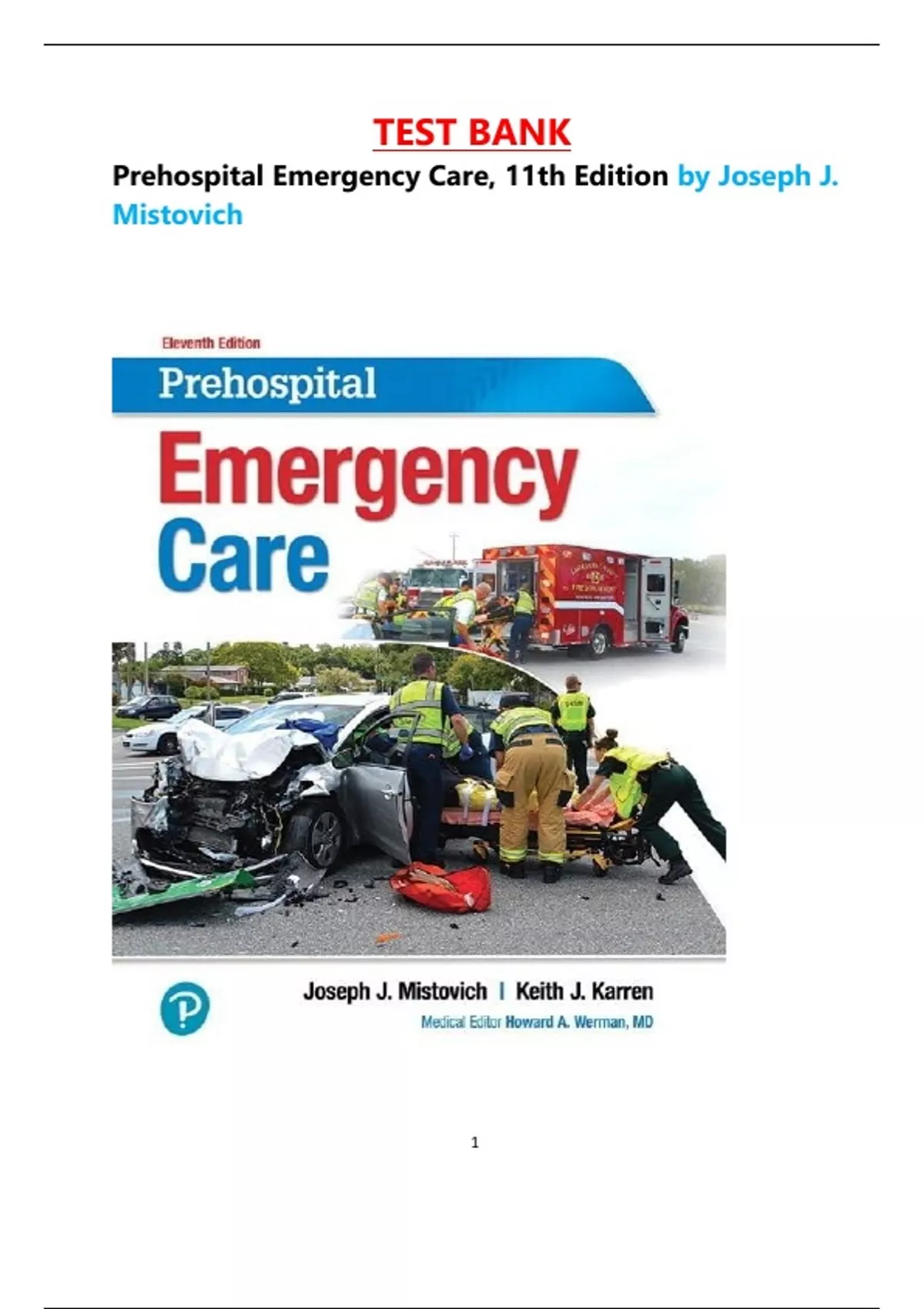 TEST BANK Prehospital Emergency Care, 11th Edition by Joseph J. Mistovich